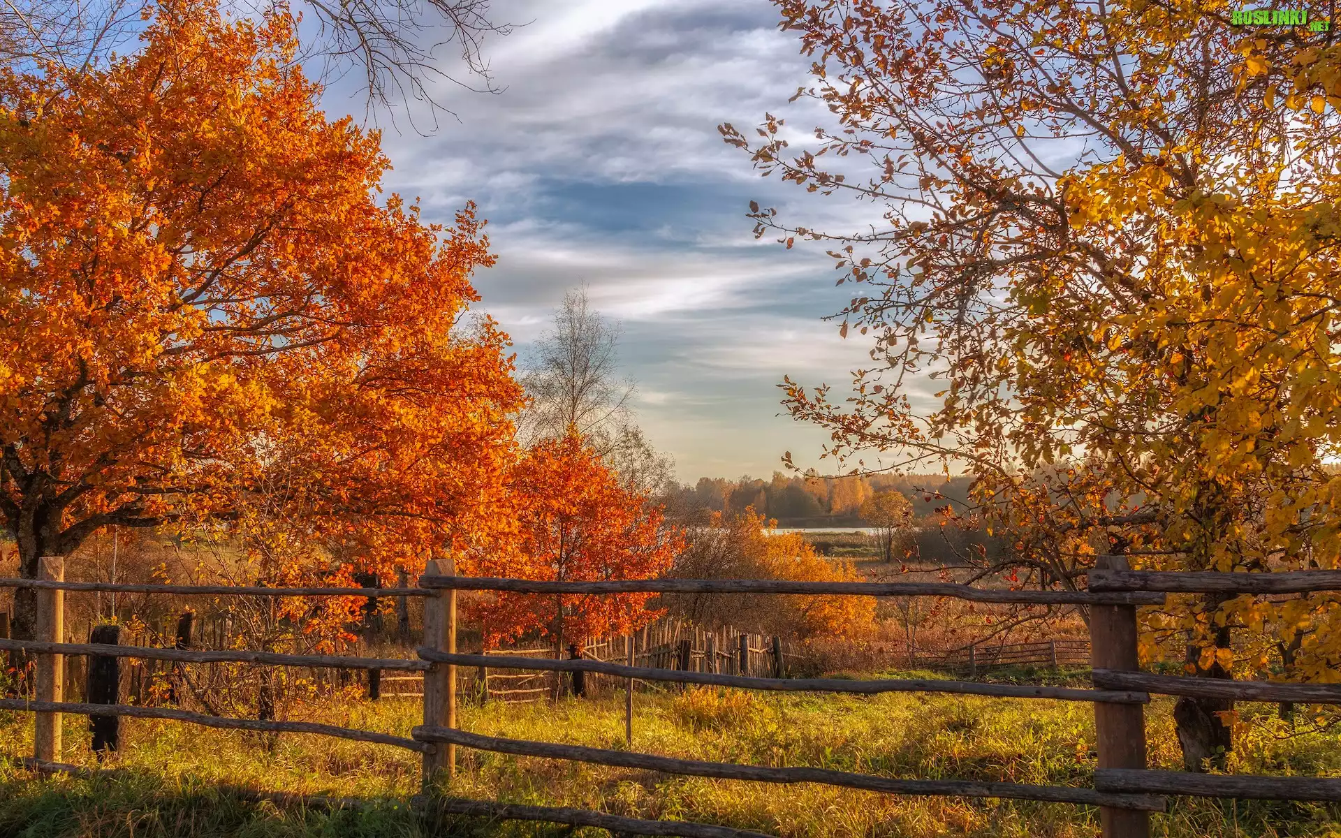 Rośliny: Jesień, Pożółkłe, Drzewa, Ogrodzenie