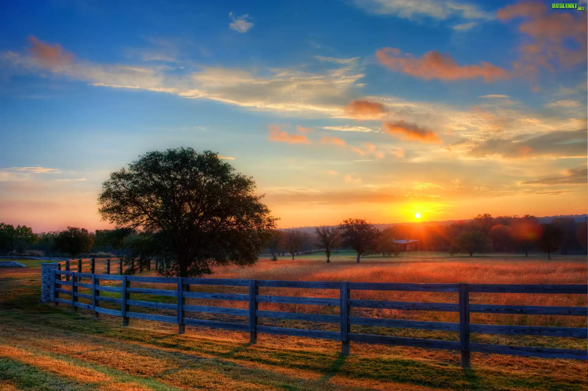 Rośliny: Ogrodzone, Pole, Drzewa, Wschód, Słońca