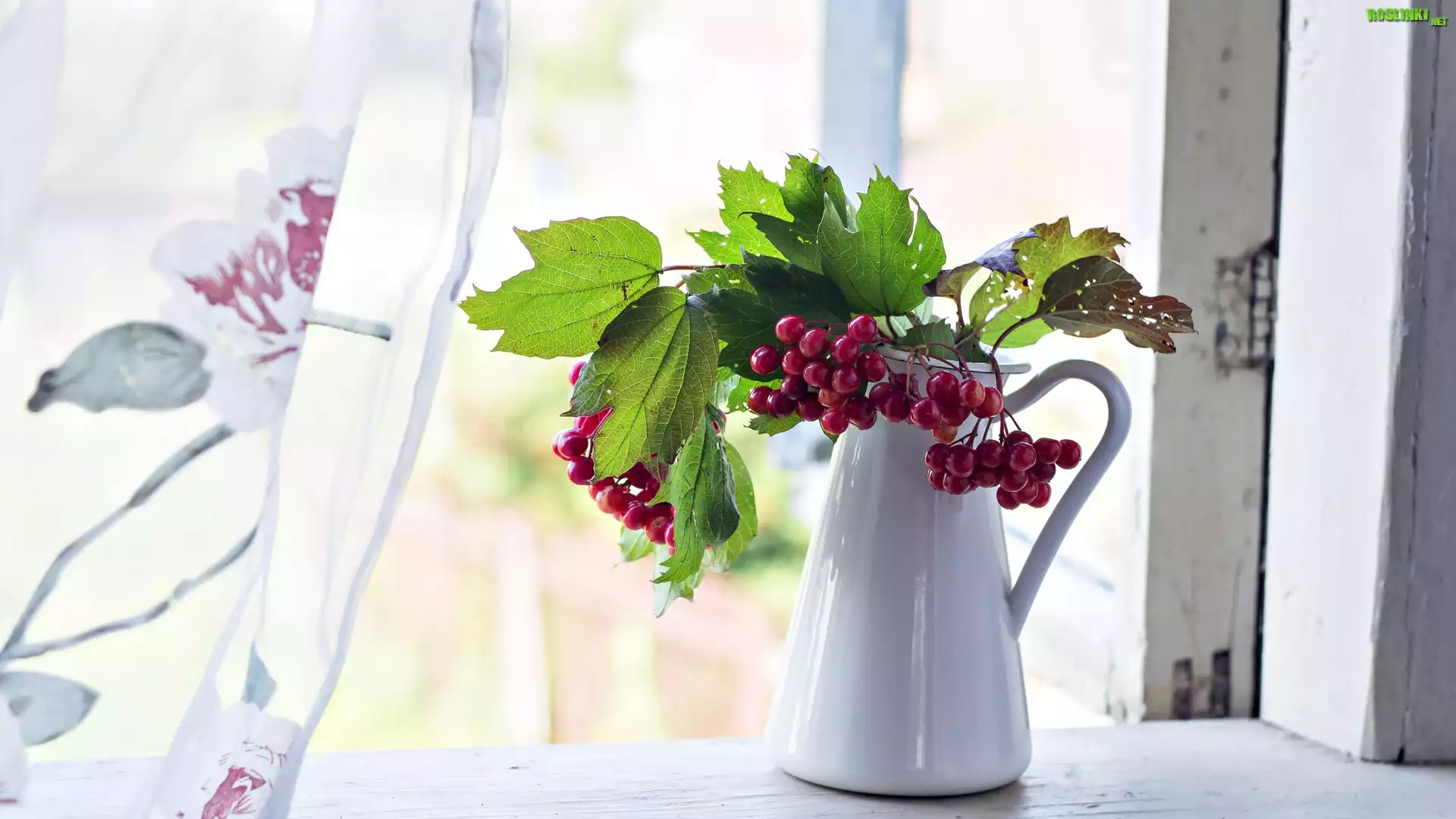 Okno, Dzbanek, Bukiet, Kalina koralowa