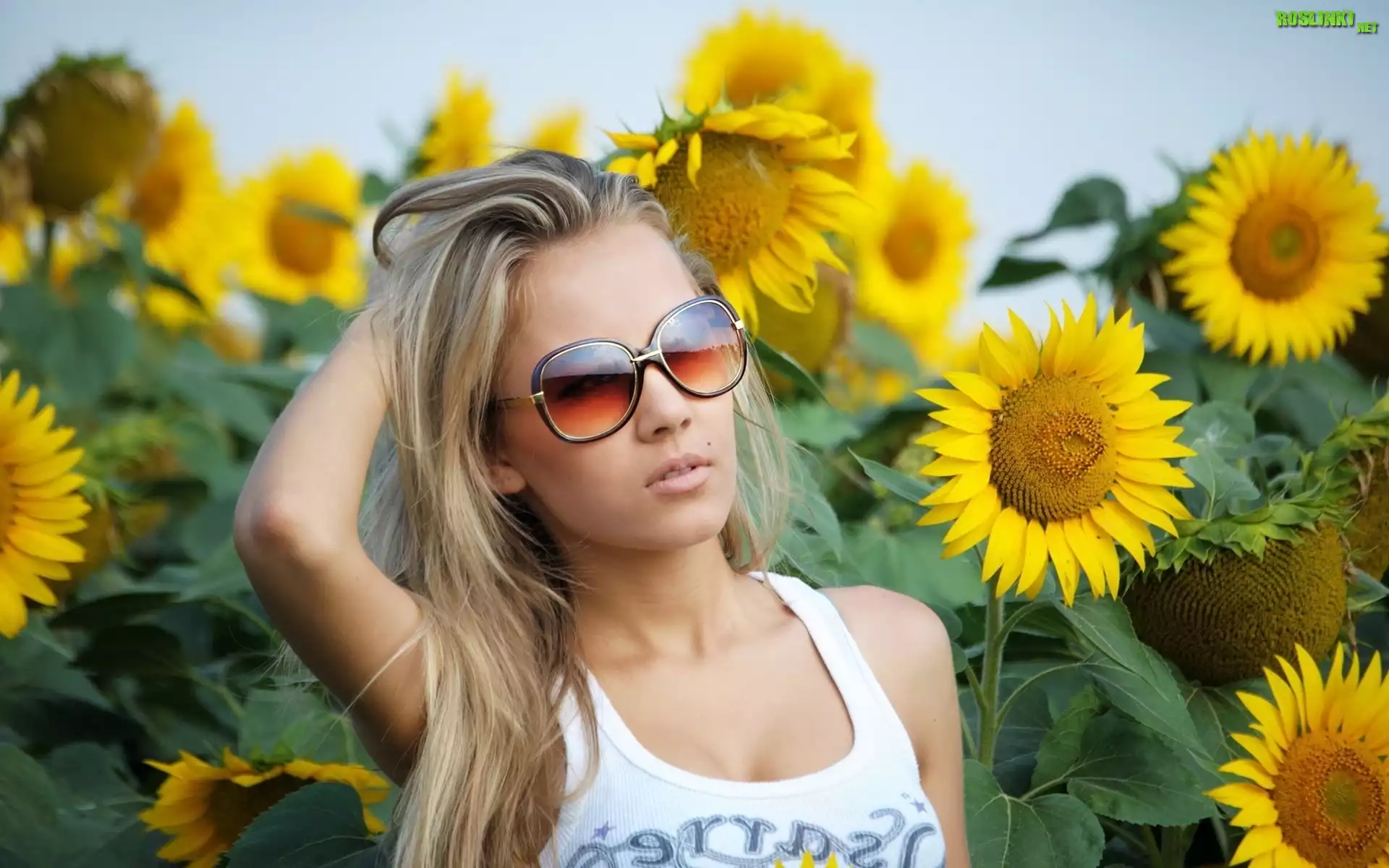 Rośliny: Dziewczyna, Okulary, Słoneczniki