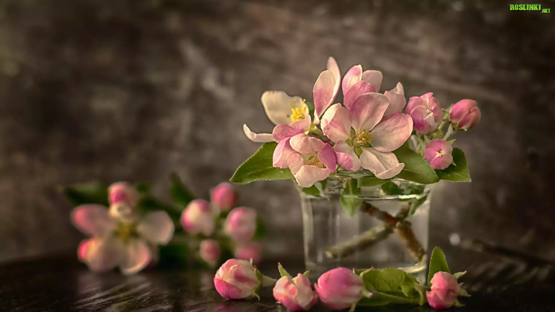 Rośliny: Okwiecone, Gałązki, Drzewo owocowe, Jabłoń, Szklanka