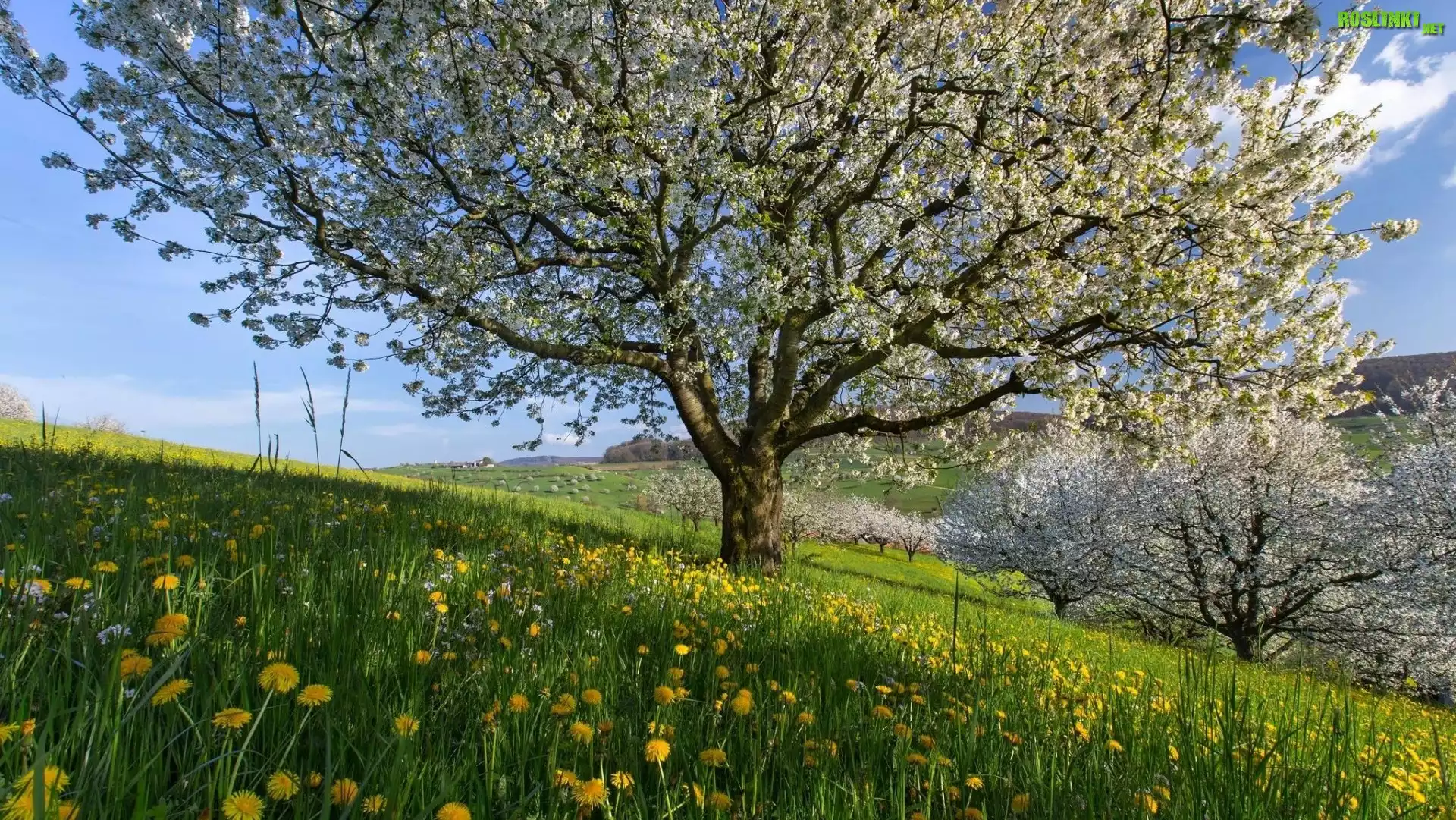 Rośliny: Łąka, Kwiaty, Mniszek, Okwiecone, Drzewa