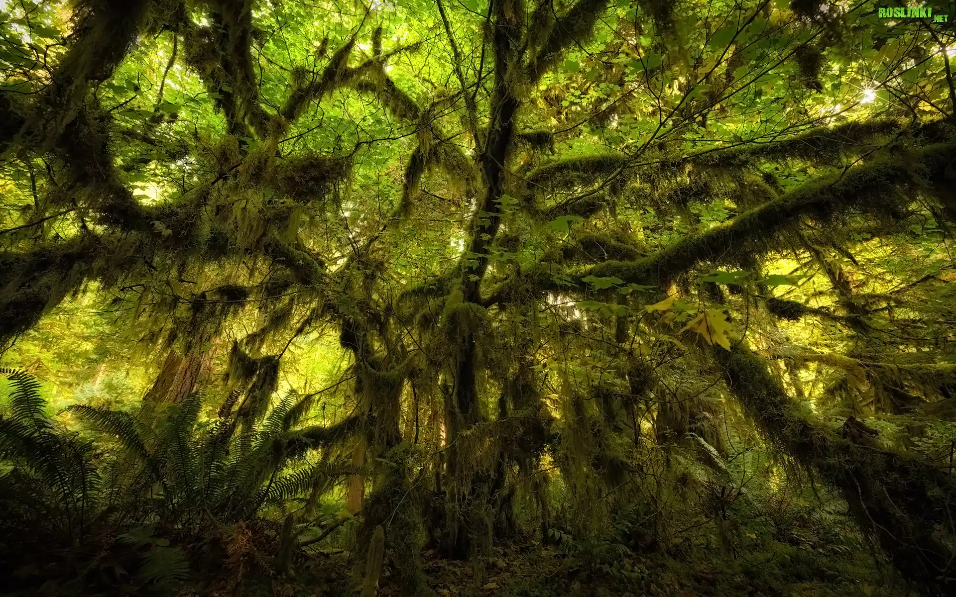 Rośliny: Las, Omszone, Drzewa, Mech, Park Narodowy Olympic, Stan Waszyngton, Stany Zjednoczone