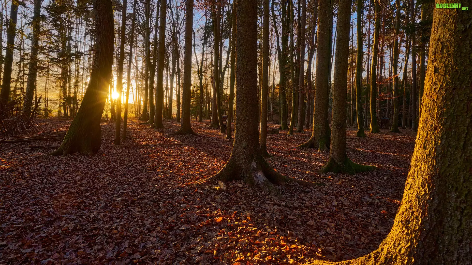 Rośliny: Las, Przebijające światło, Opadłe, Brązowe, Liście, Drzewa