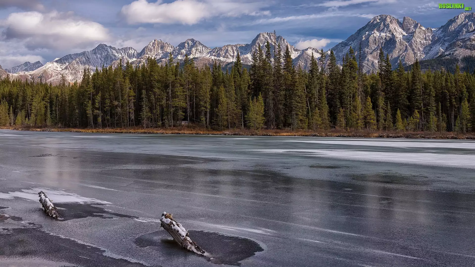 Rośliny: Drzewa, Las, Jezioro, Spillway Lake, Zima, Opal Mountain Range, Alberta, Kanada