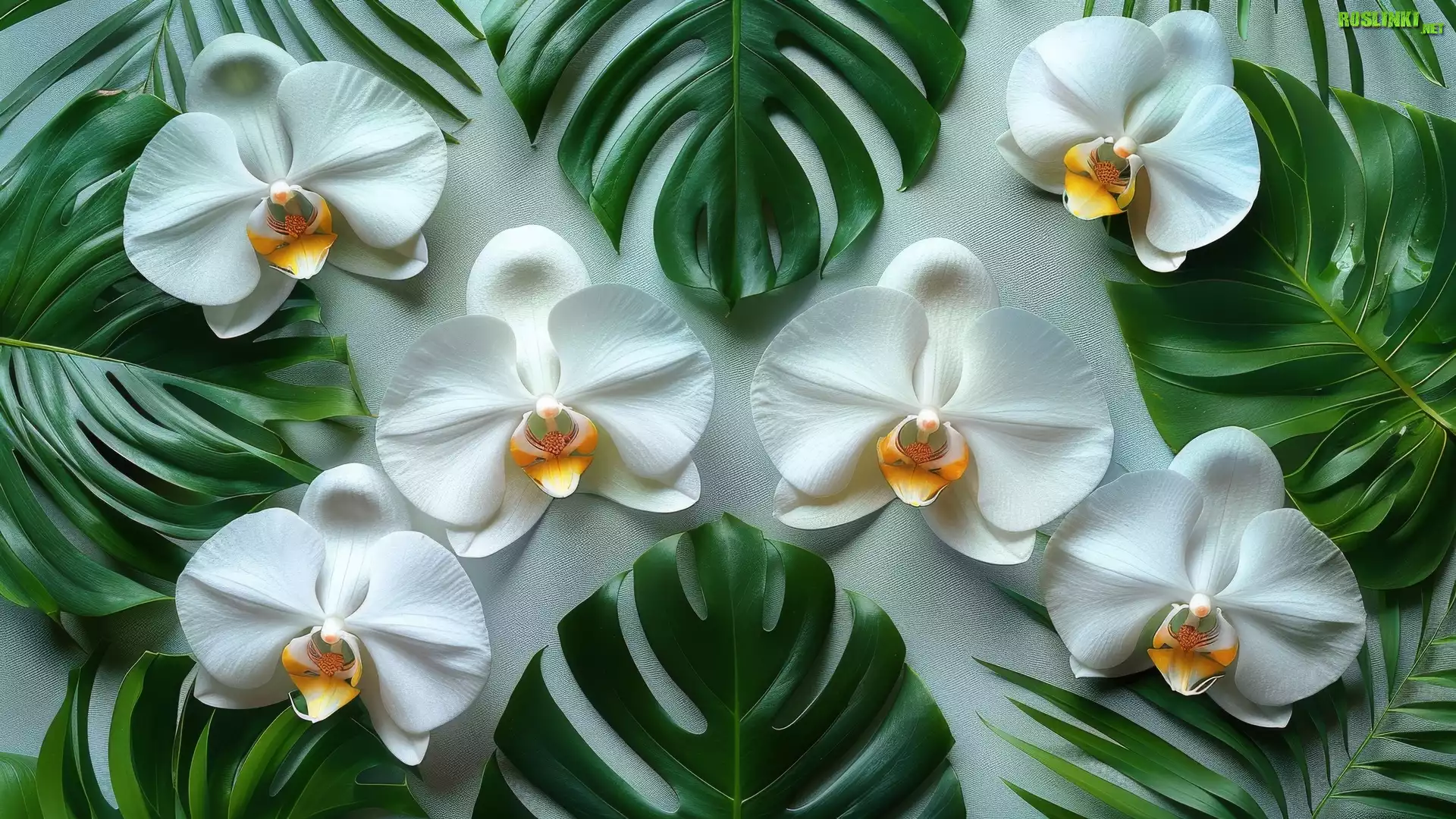 Rośliny: Storczyki, Orchidea, Białe, Kwiaty, Liście