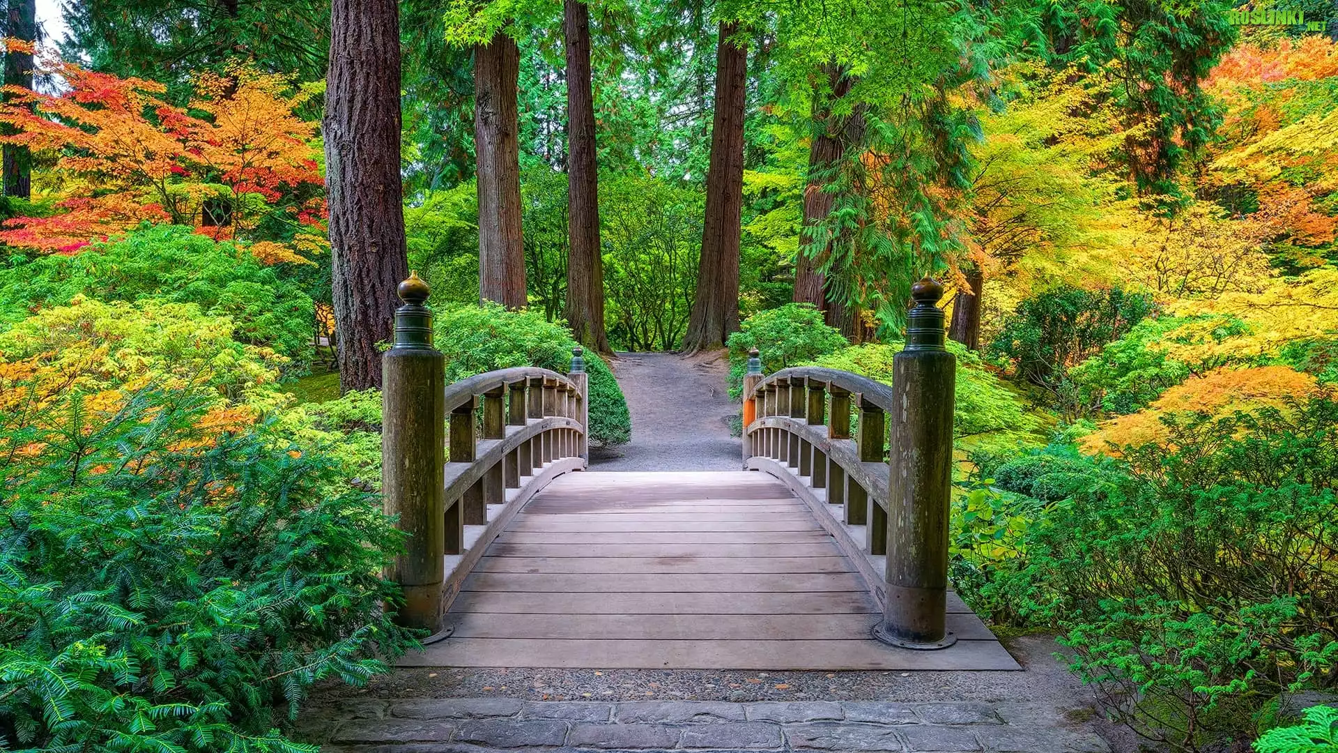Rośliny: Stany Zjednoczone, Oregon, Portland, Portland Japanese Garden, Ogród, Drzewa, Krzewy, Mostek