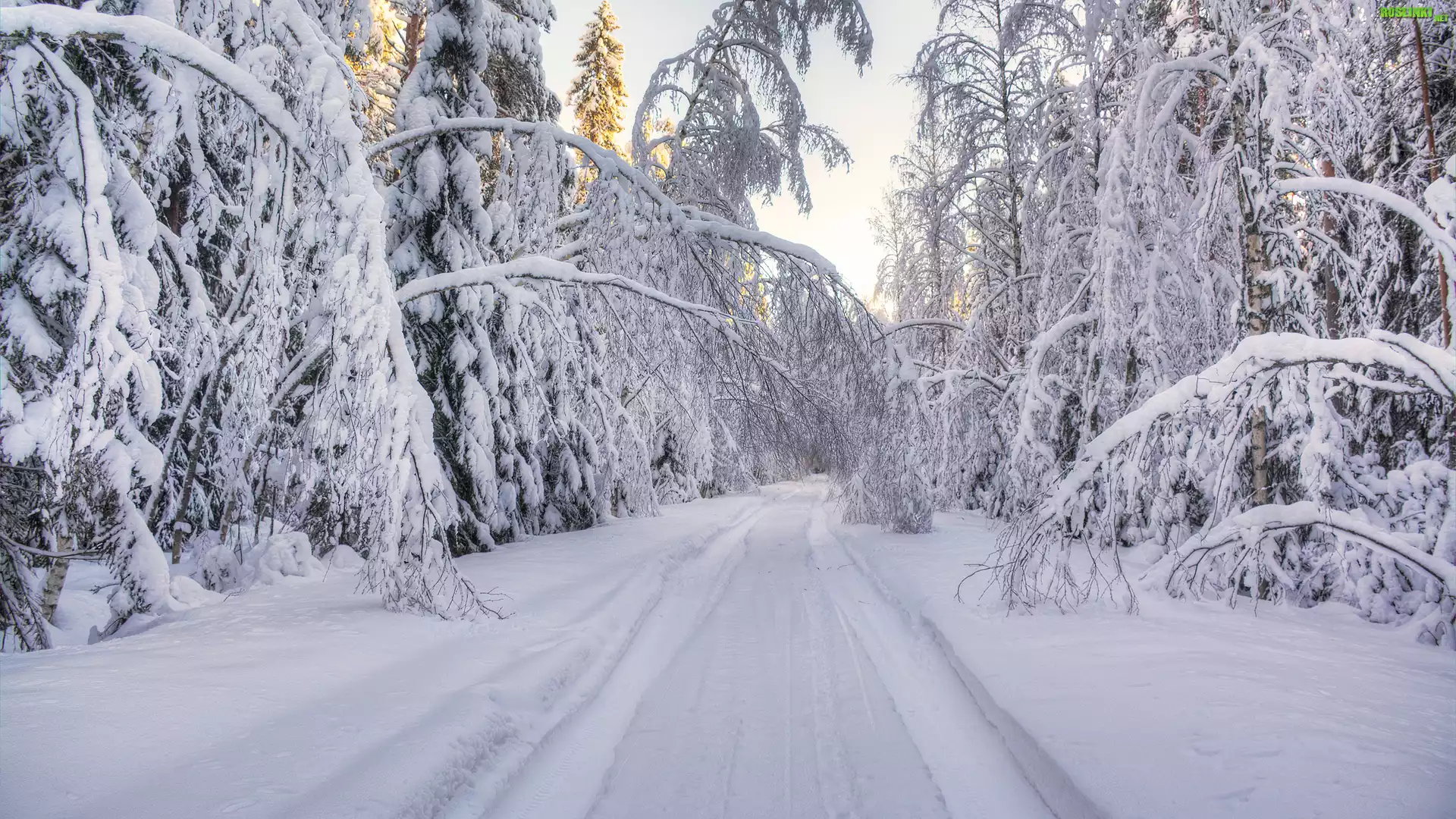 Rośliny: Droga, Ośnieżone, Drzewa, Zima, Las