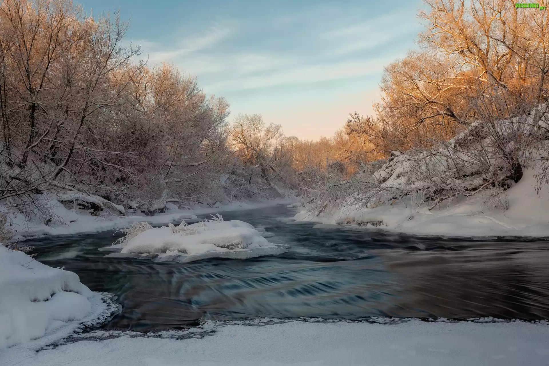 Rośliny: Zima, Śnieg, Mróz, Rzeka Miedwiedica, Lód, Ośnieżone, Drzewa, Obwód saratowski, Rosja