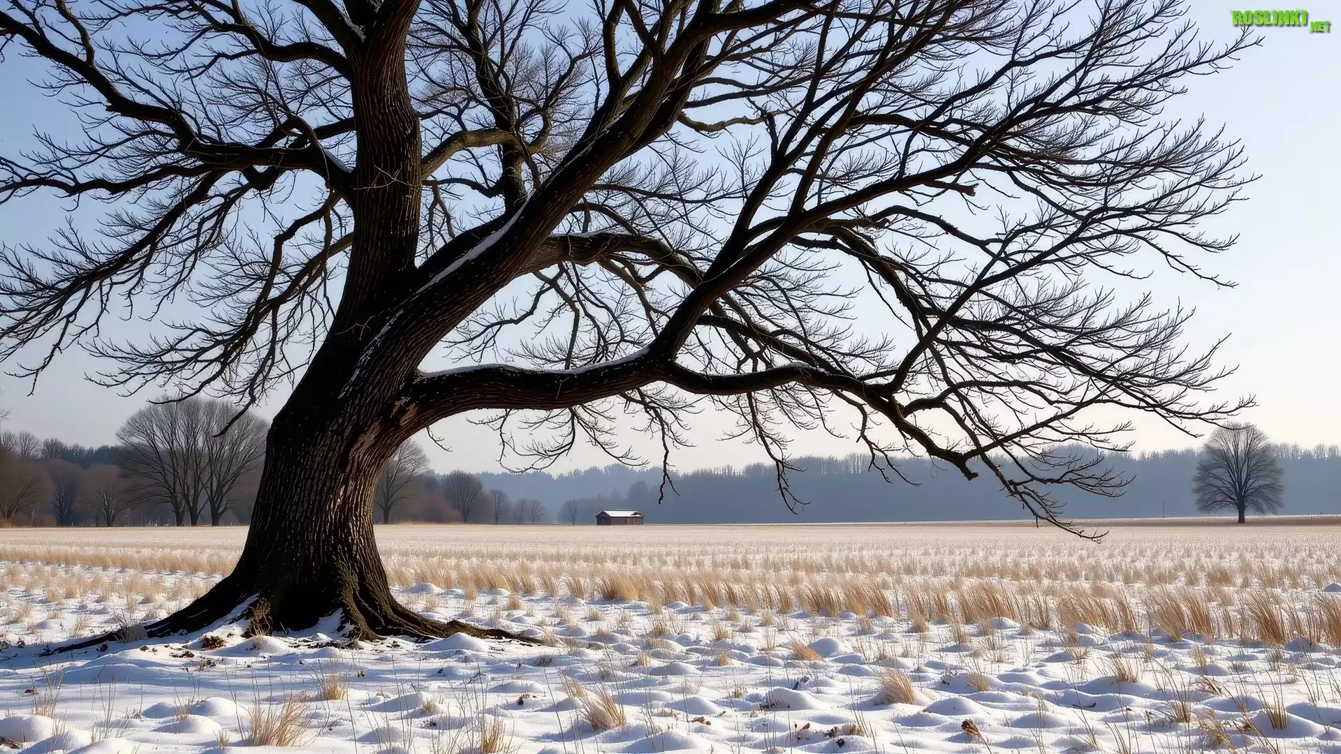 Zima, Stare, Drzewo, Ośnieżone, Pole, Suche, Trawy