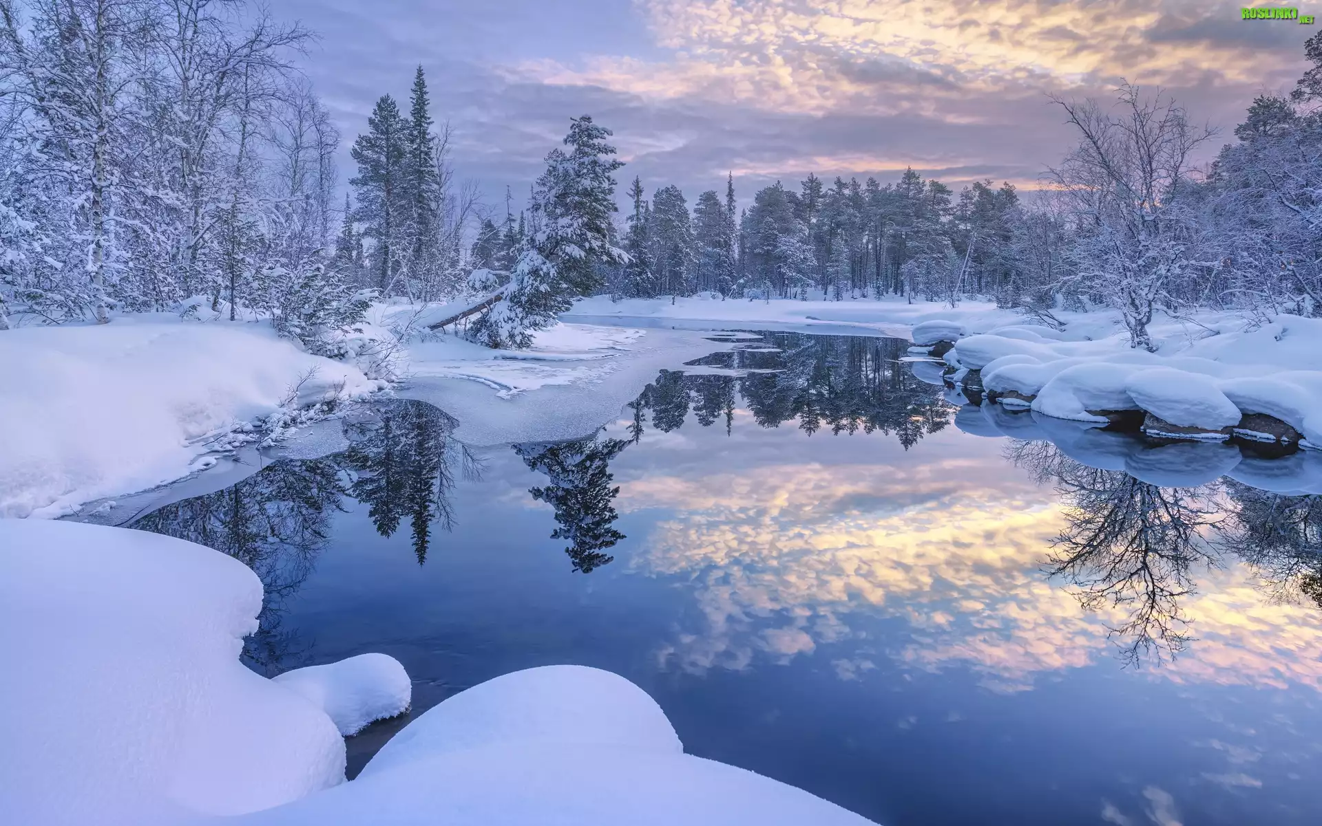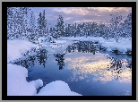 Rośliny: Zima, Rzeka, Drzewa, Ośnieżone, Śnieg, Odbicie