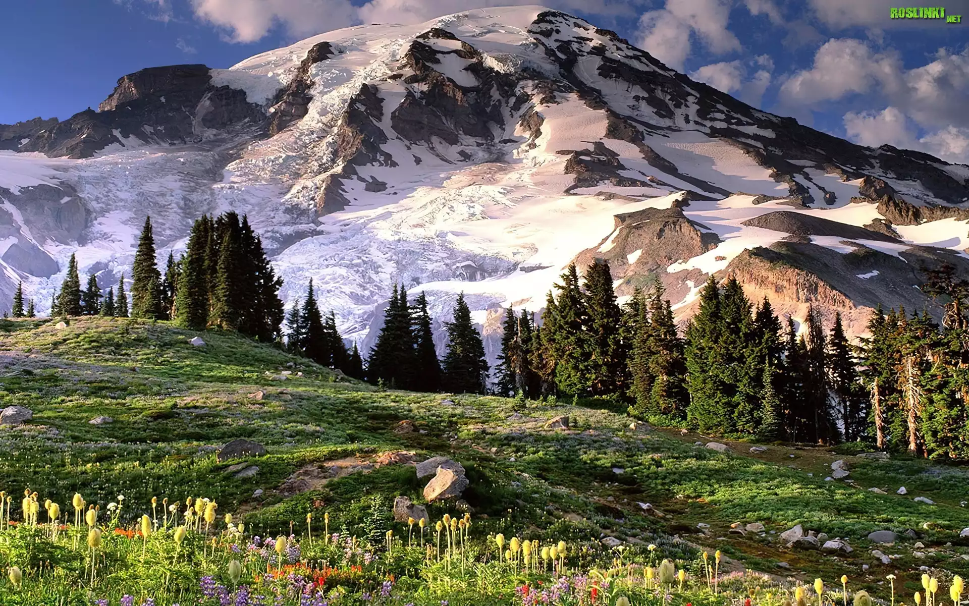 Rośliny: Ośnieżone, Góry, Drzewa, Polana, Roślinność, Kanada