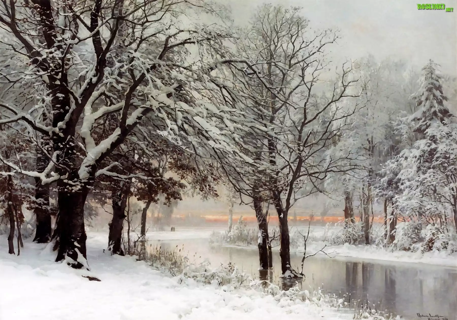 Rośliny: Rzeka, Ośnieżone, Drzewa