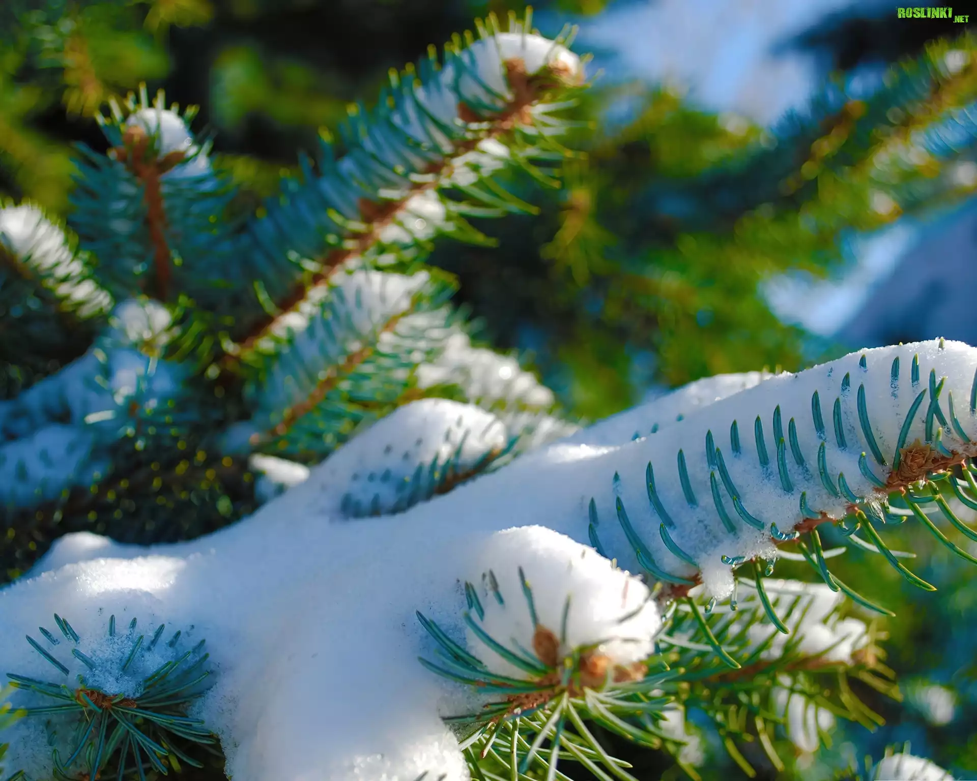 Rośliny: Świerki, Ośnieżone, Gałązki