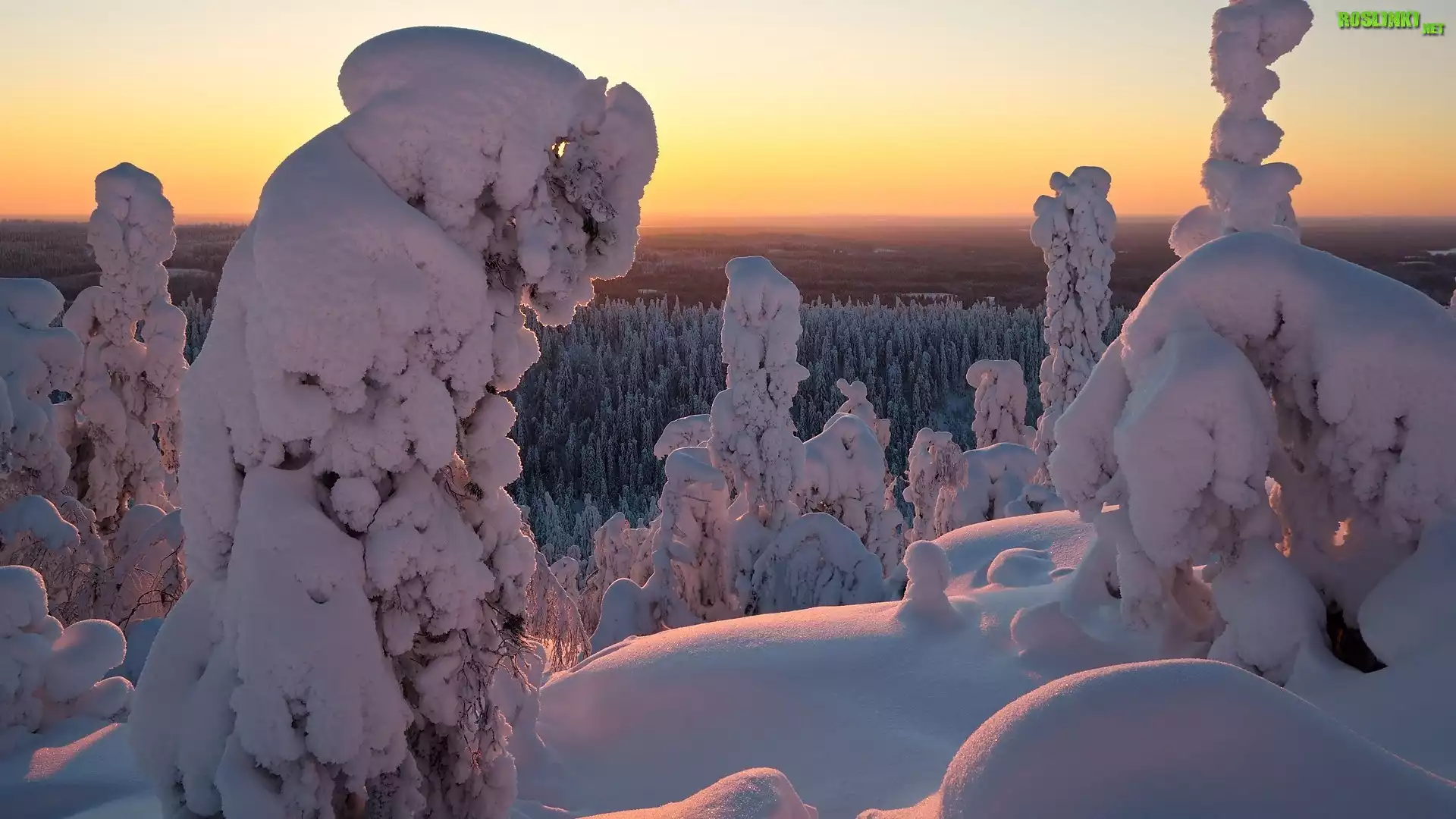 Rośliny: Poranek, Zima, Las, Ośnieżone, Drzewa, Zaspy