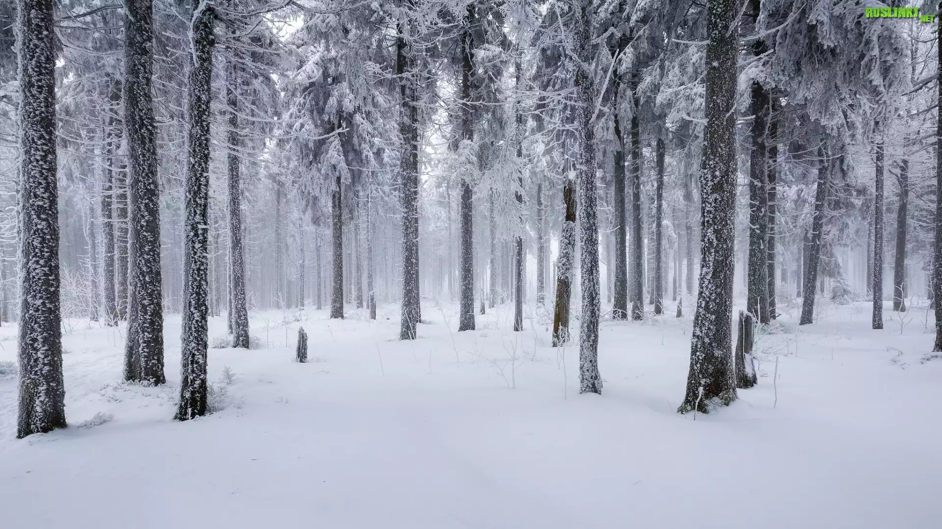 Rośliny: Zima, Śnieg, Las, Ośnieżony, Iglasty, Drzewa, Mgła