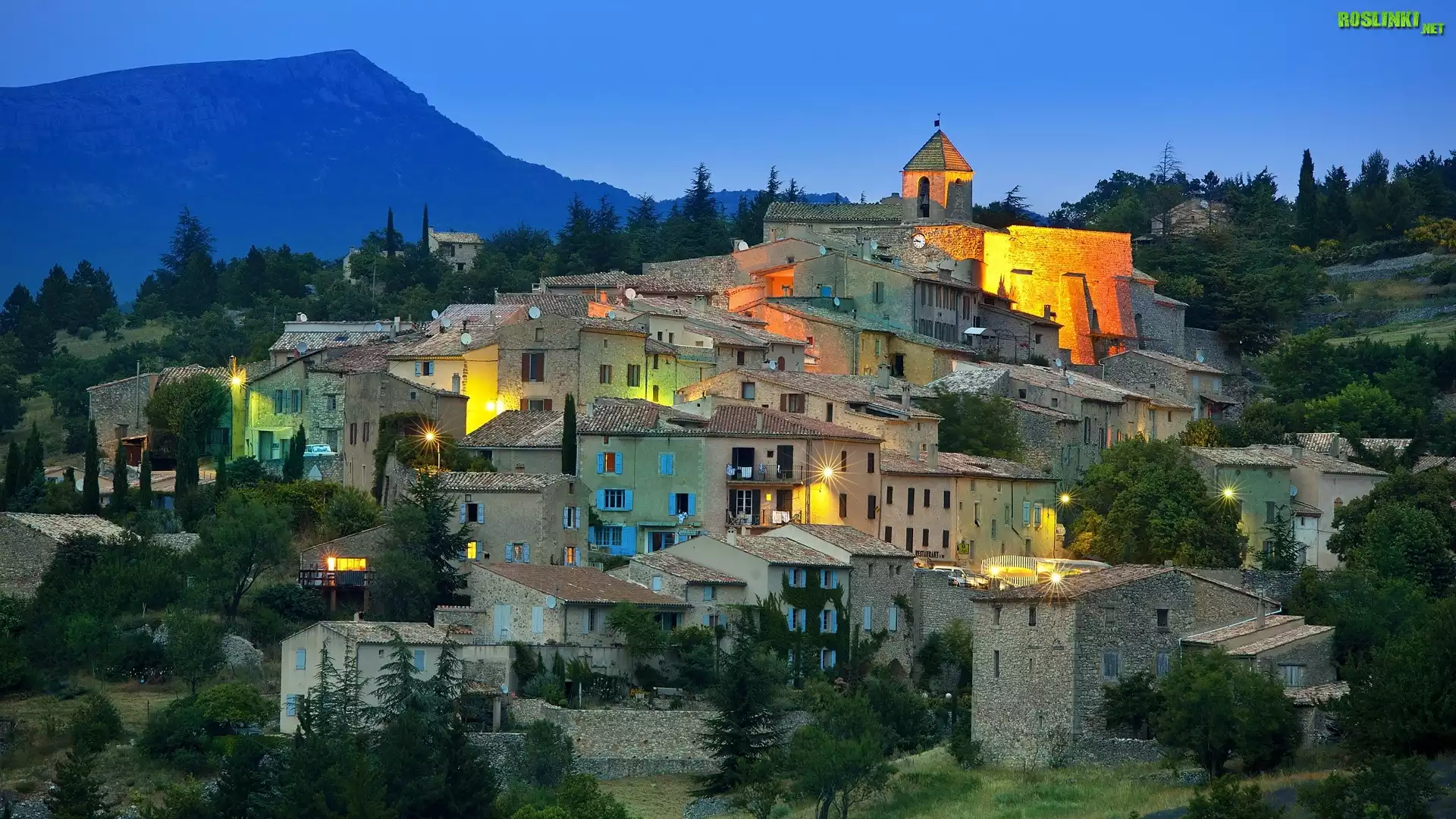 Rośliny: Oświetlone, Domy, Góry, Drzewa