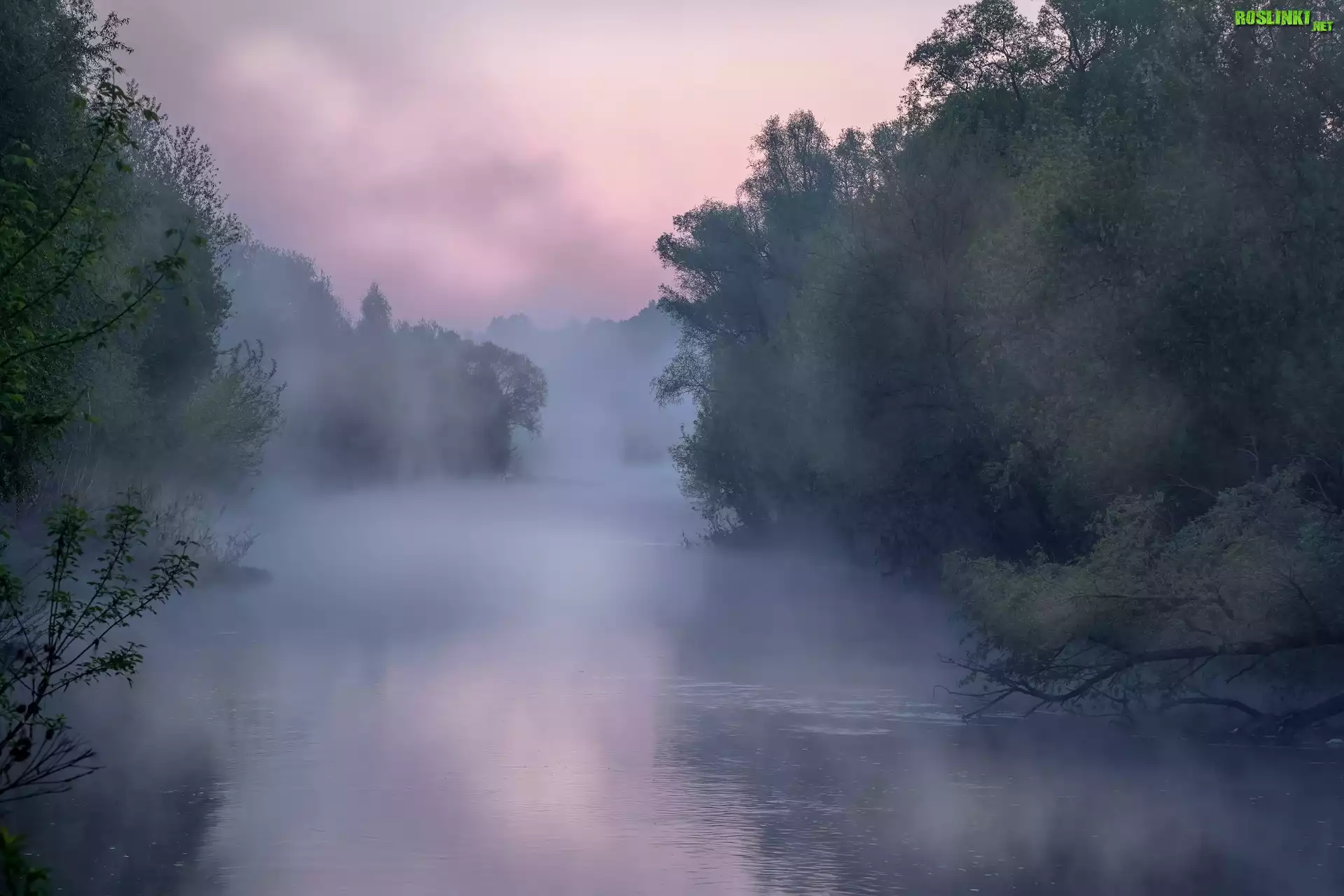 Rośliny: Rzeka Osyotr, Drzewa, Mgła, Zarajsk, Obwód moskiewski, Rosja