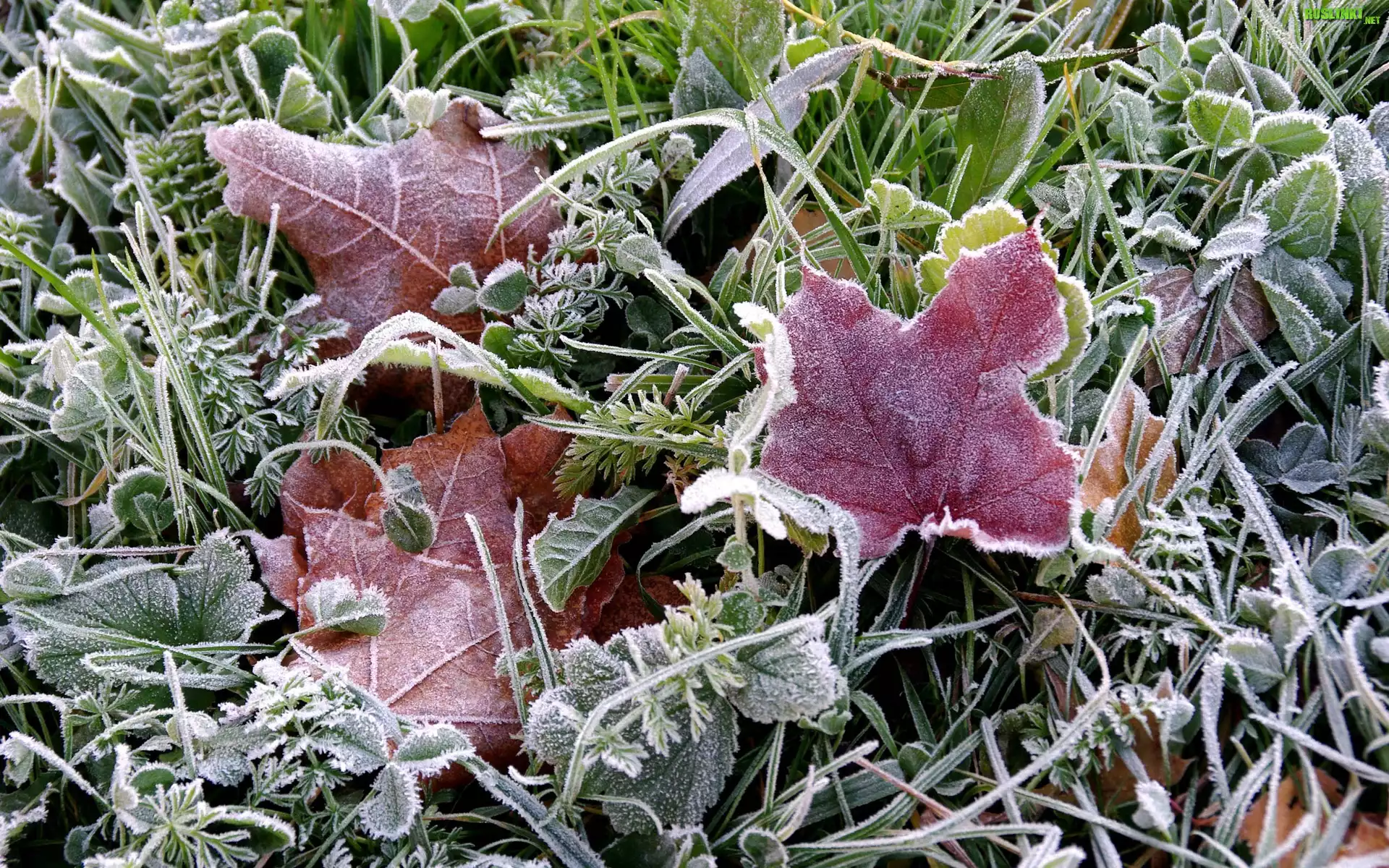 Oszronione, Rośliny, Czerwone, Listki