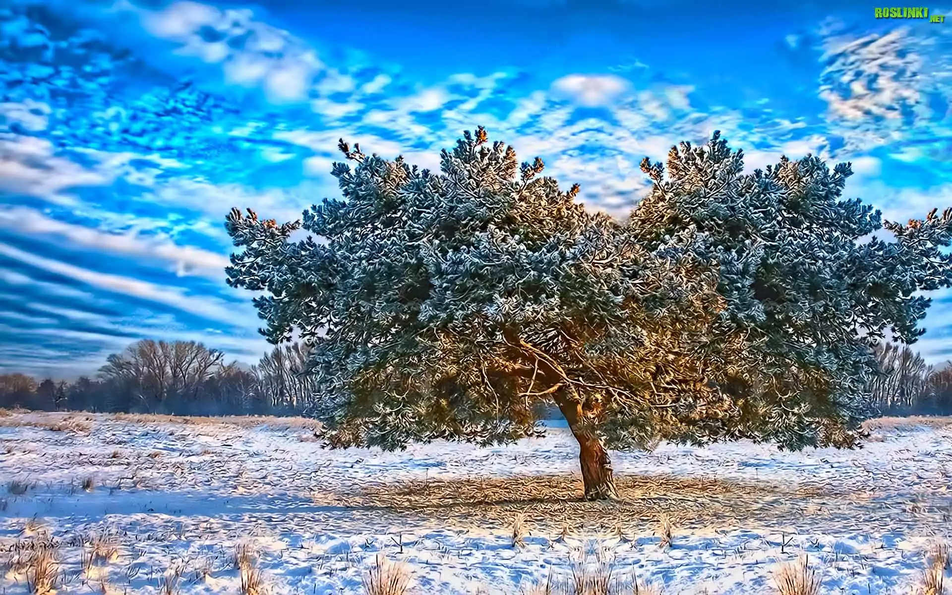 Rośliny: Oszronione, Drzewo, Chmury, Śnieg, Zima