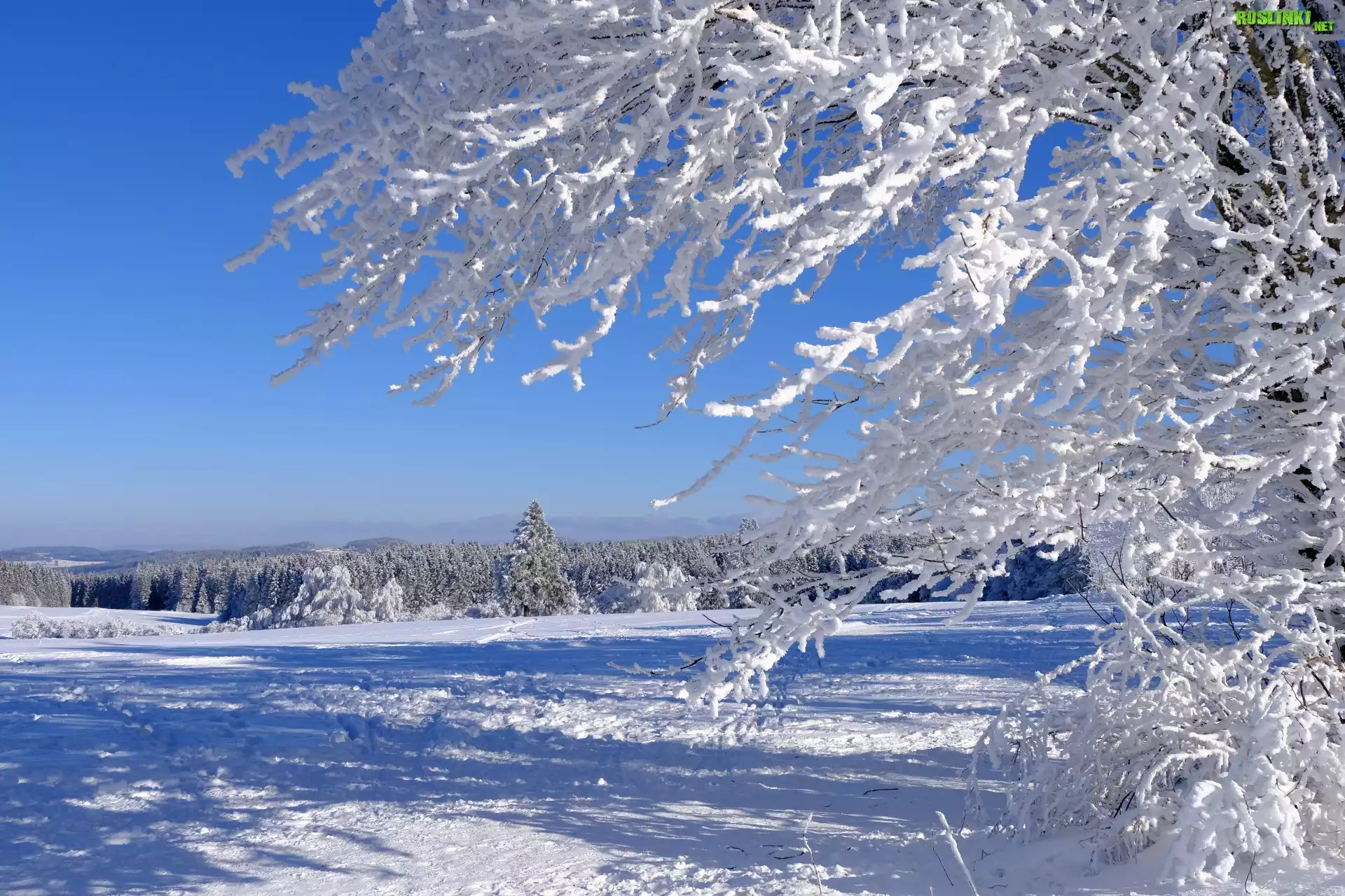 Rośliny: Drzewo, Oszronione, Ośnieżone, Gałęzie, Zima