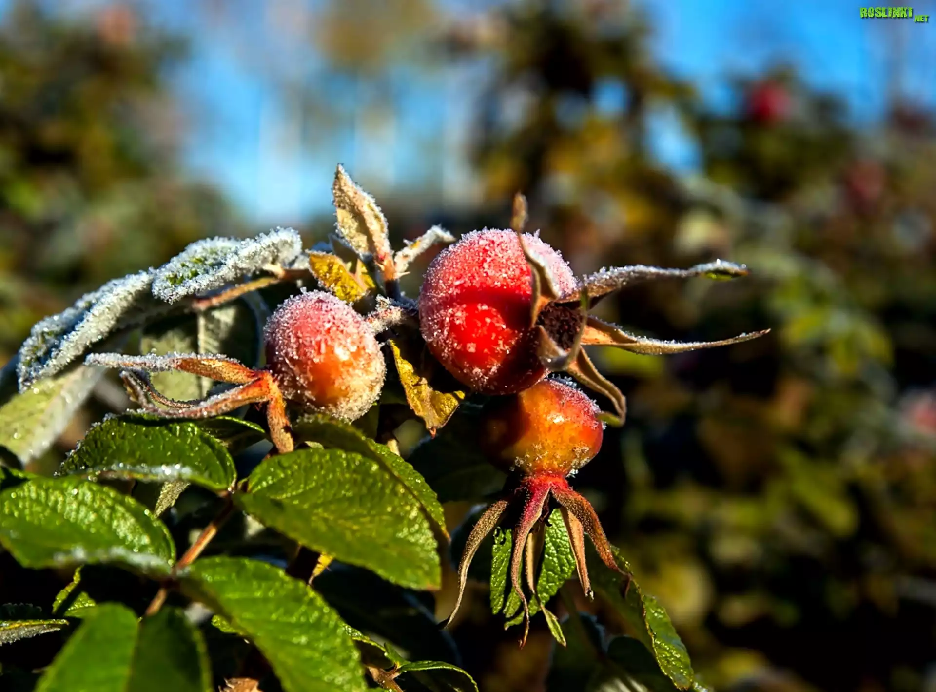 Rośliny: Owoc, Dzikiej, Róży, Szron