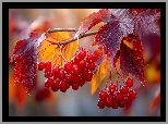 Jesienna, Gałązka, Czerwone, Owoce, Liście, Grafika