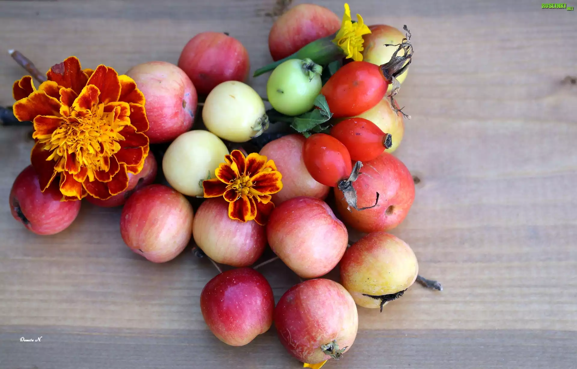 Rośliny: Owoce, Dzikiej Róży, Jabłka, Aksamitka