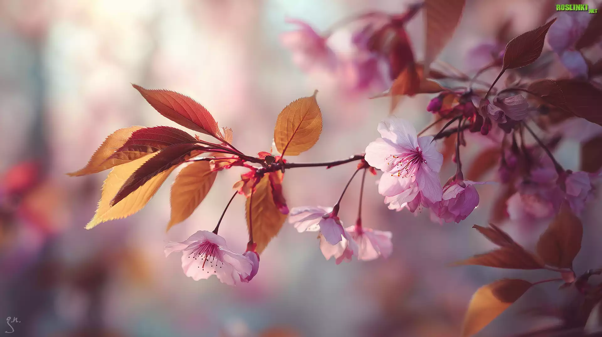 Rośliny: Różowe, Kwiaty, Drzewo owocowe, Grafika AI