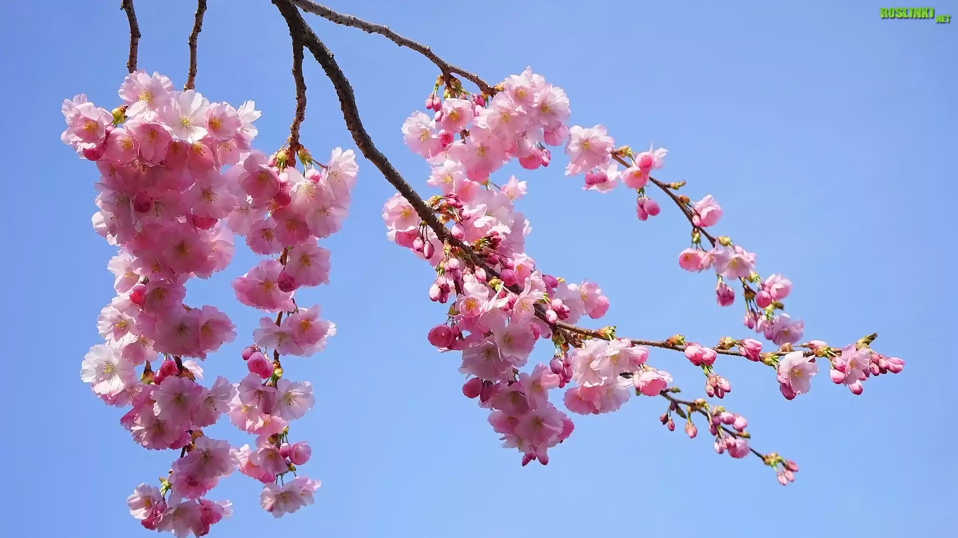 Rośliny: Drzewo owocowe, Wiśnia japońska, Różowe, Kwiaty, Gałązki