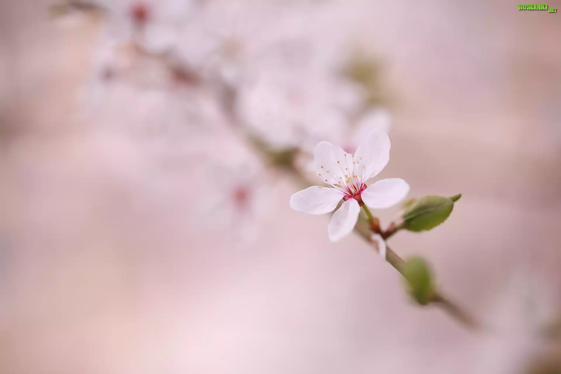 Rośliny: Biały, Kwiat, Drzewo owocowe, Gałązka, Rozmyte tło