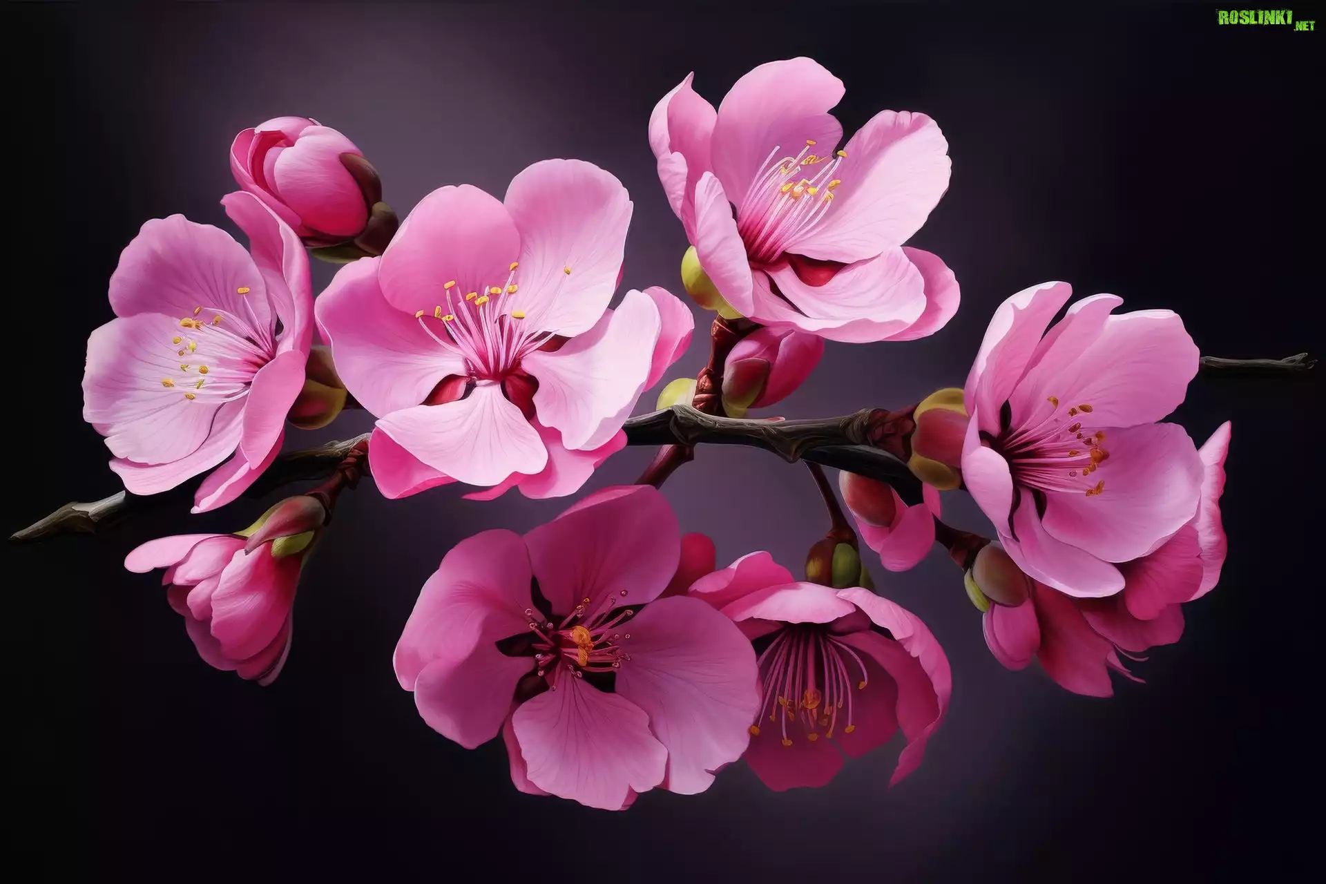 Rośliny: Różowe, Kwiaty, Drzewo owocowe, Tło, Czarne, AI