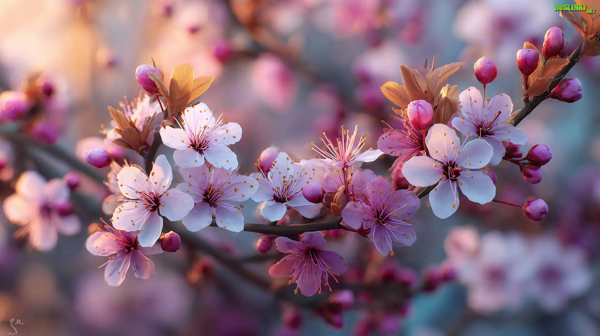 Rośliny: Różowe, Kwiaty, Drzewo owocowe, Grafika AI, Gałązka