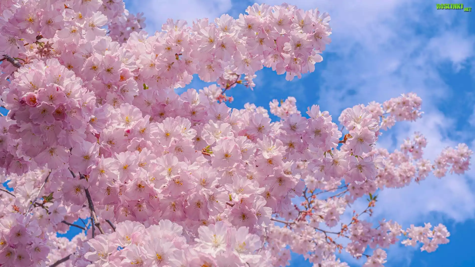 Różowe, Kwiaty, Drzewo owocowe, Wiśnia japońska, Gałązki