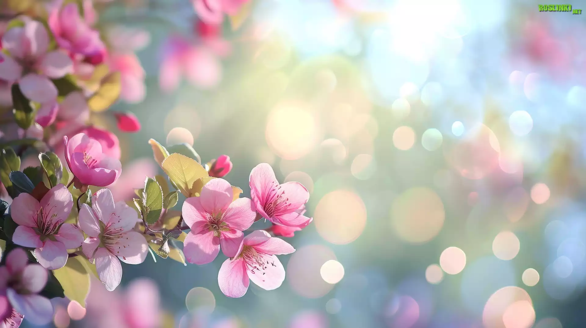 Rośliny: Różowe, Kwiaty, Drzewo owocowe, Słoneczne, Światło, Grafika