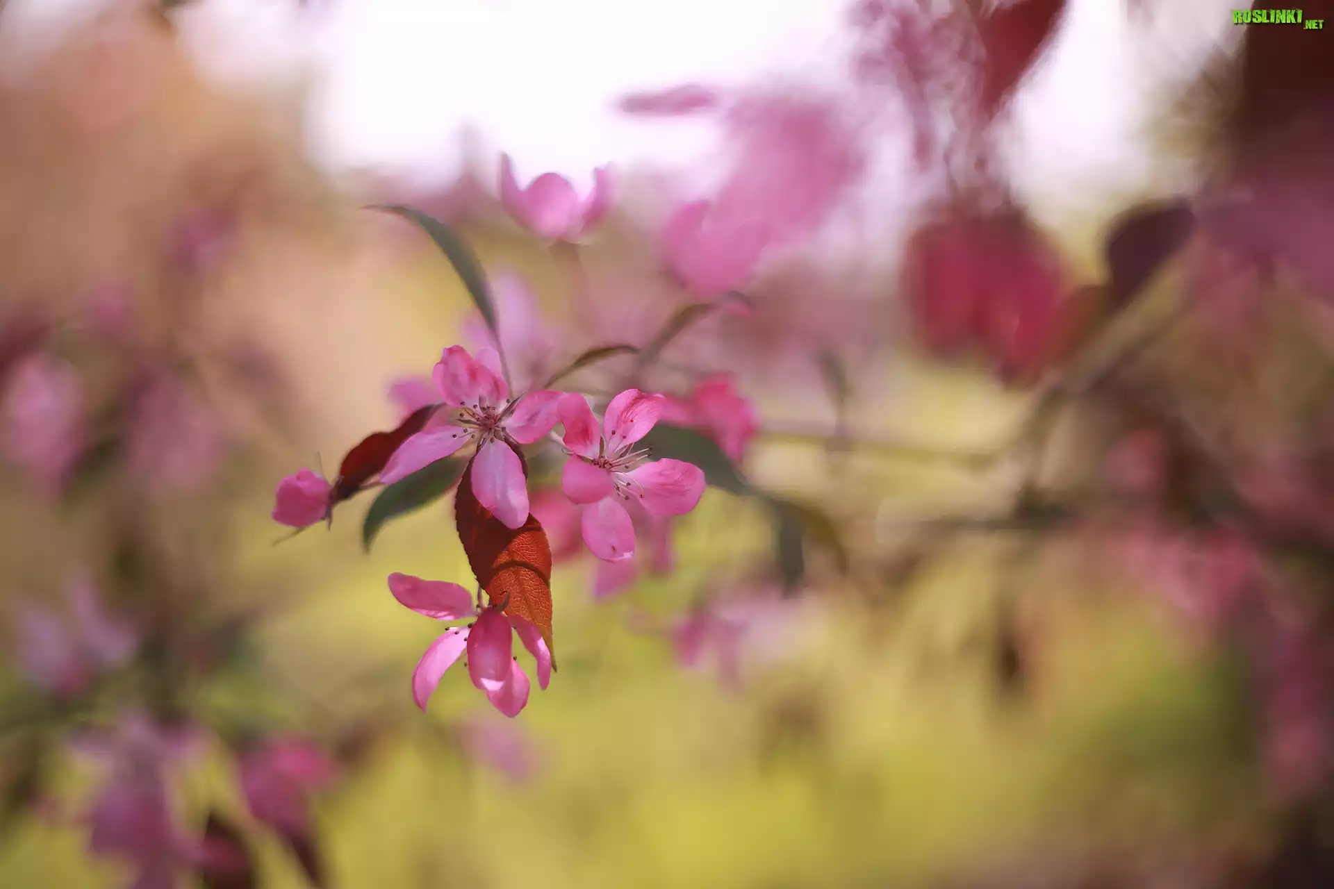 Rośliny: Różowe, Kwiaty, Drzewo owocowe, Jabłoń, Gałązka