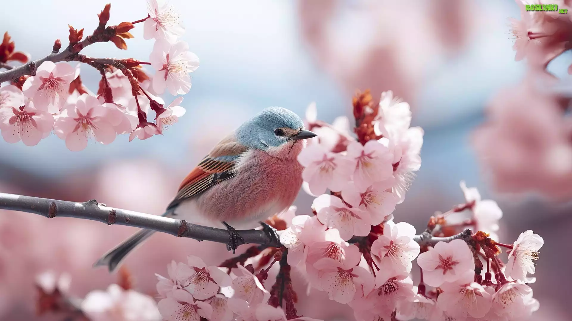 Rośliny: Ptak, Gałązka, Drzewo owocowe, Różowe, Kwiaty