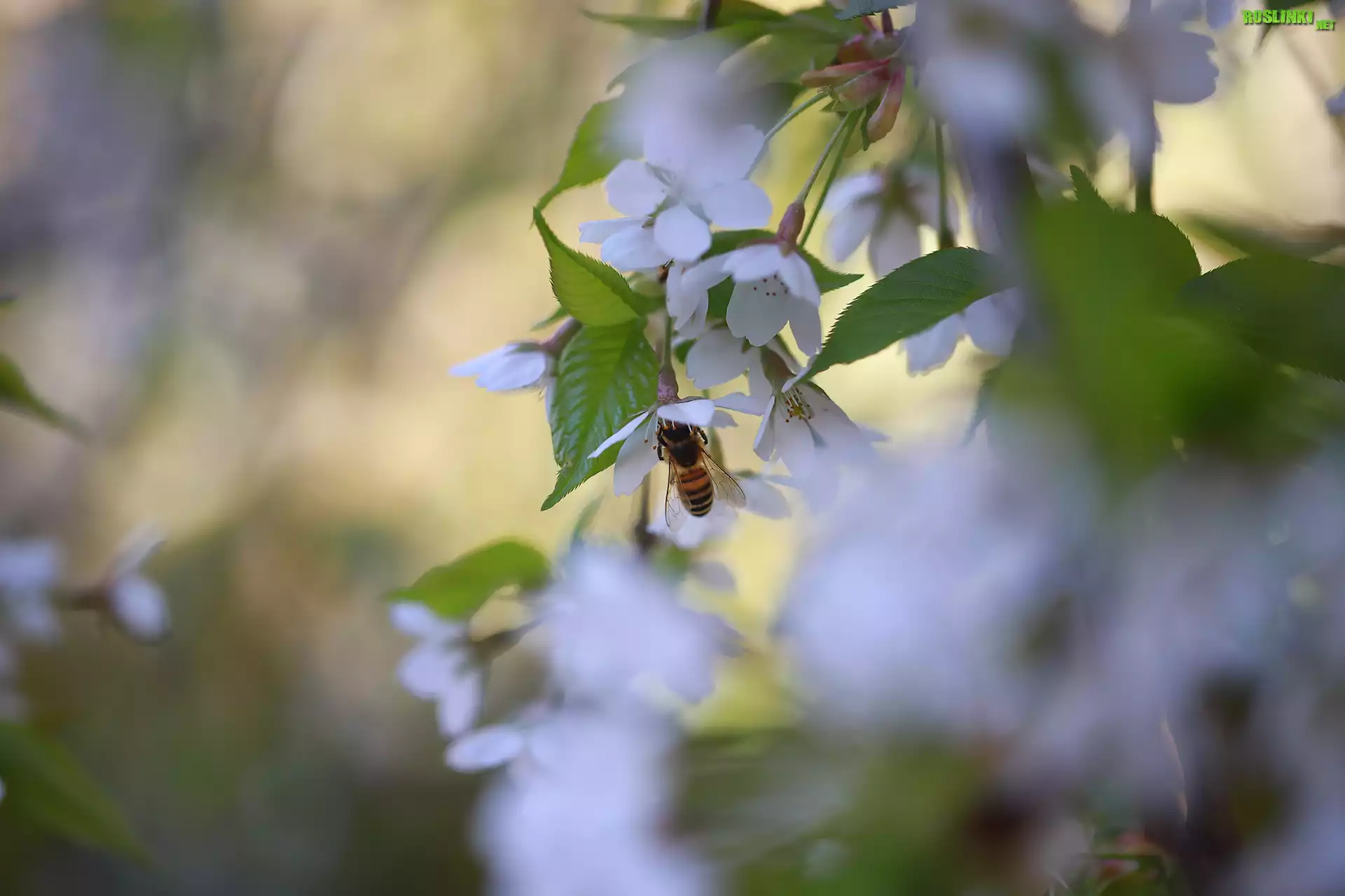 Rośliny: Białe, Kwiaty, Drzewo owocowe, Pszczoła, Owad