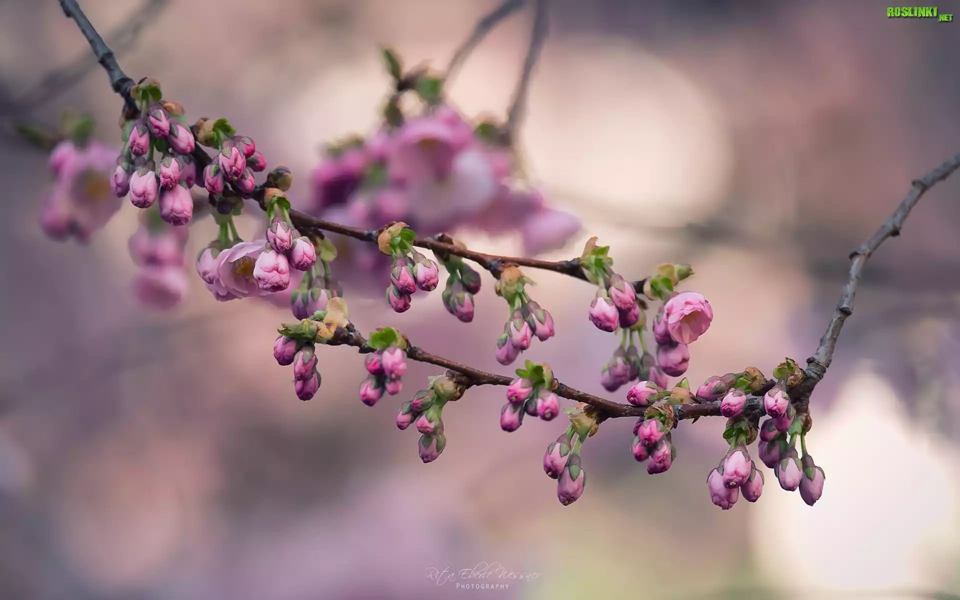 Rośliny: Drzewo owocowe, Wiśnia piłkowana, Gałązka, Różowe, Kwiaty, Pąki