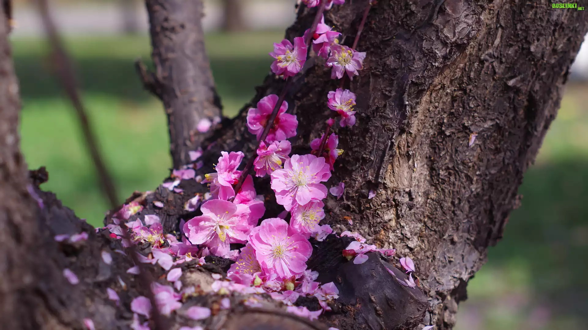Rośliny: Drzewo owocowe, Różowe, Kwiaty, Pień