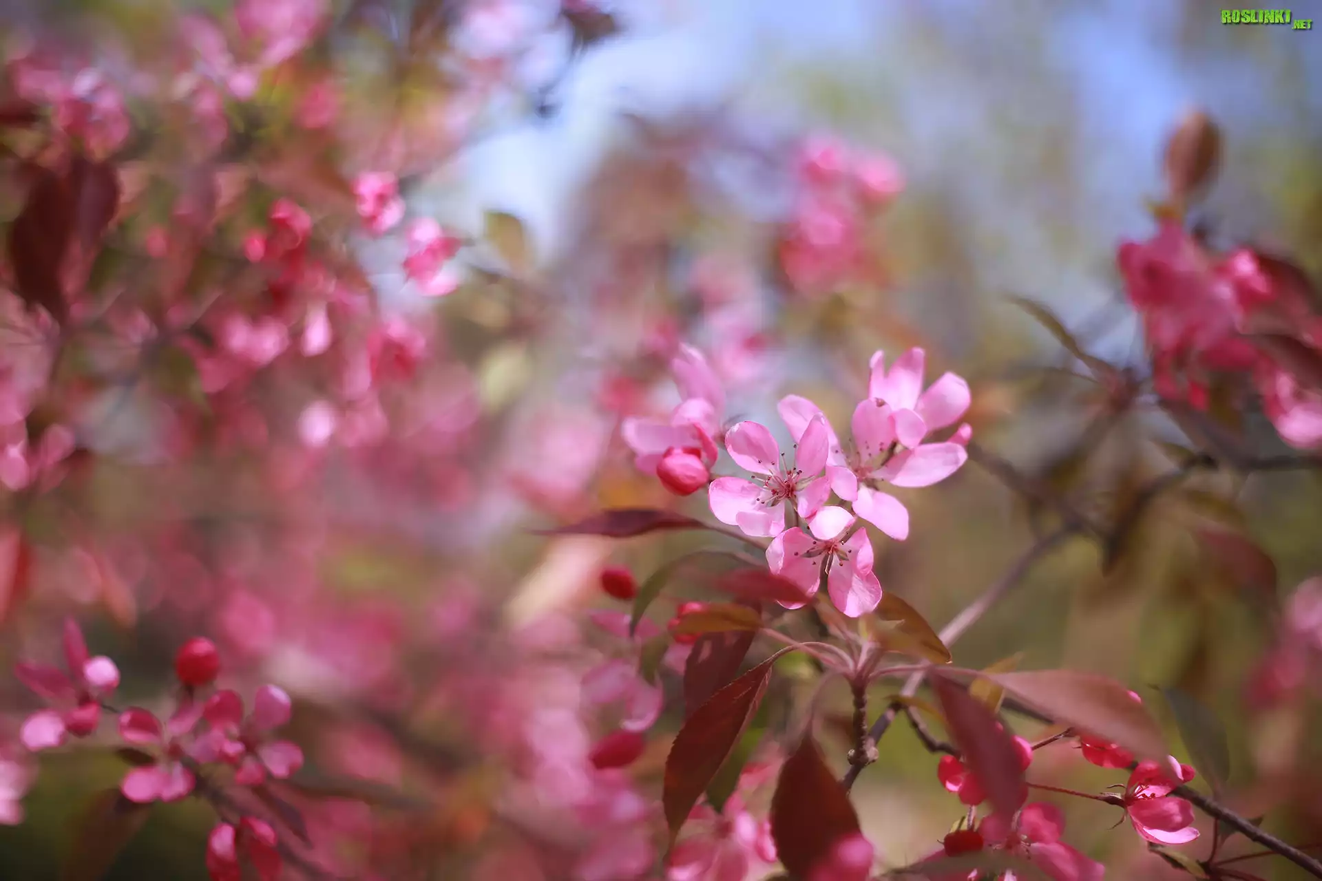 Rośliny: Różowe, Kwiaty, Drzewo owocowe, Rozmyte, Tło