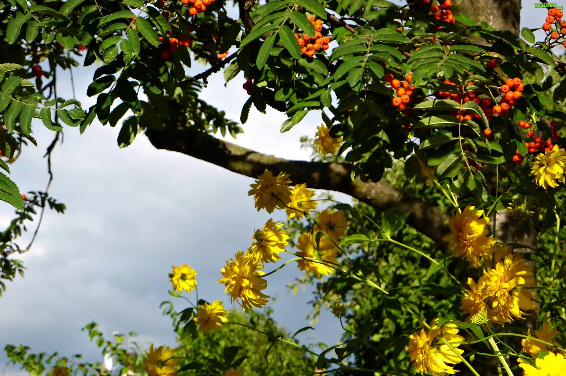 Rośliny: Owocująca, Jarzębina, Żółte, Kwiaty