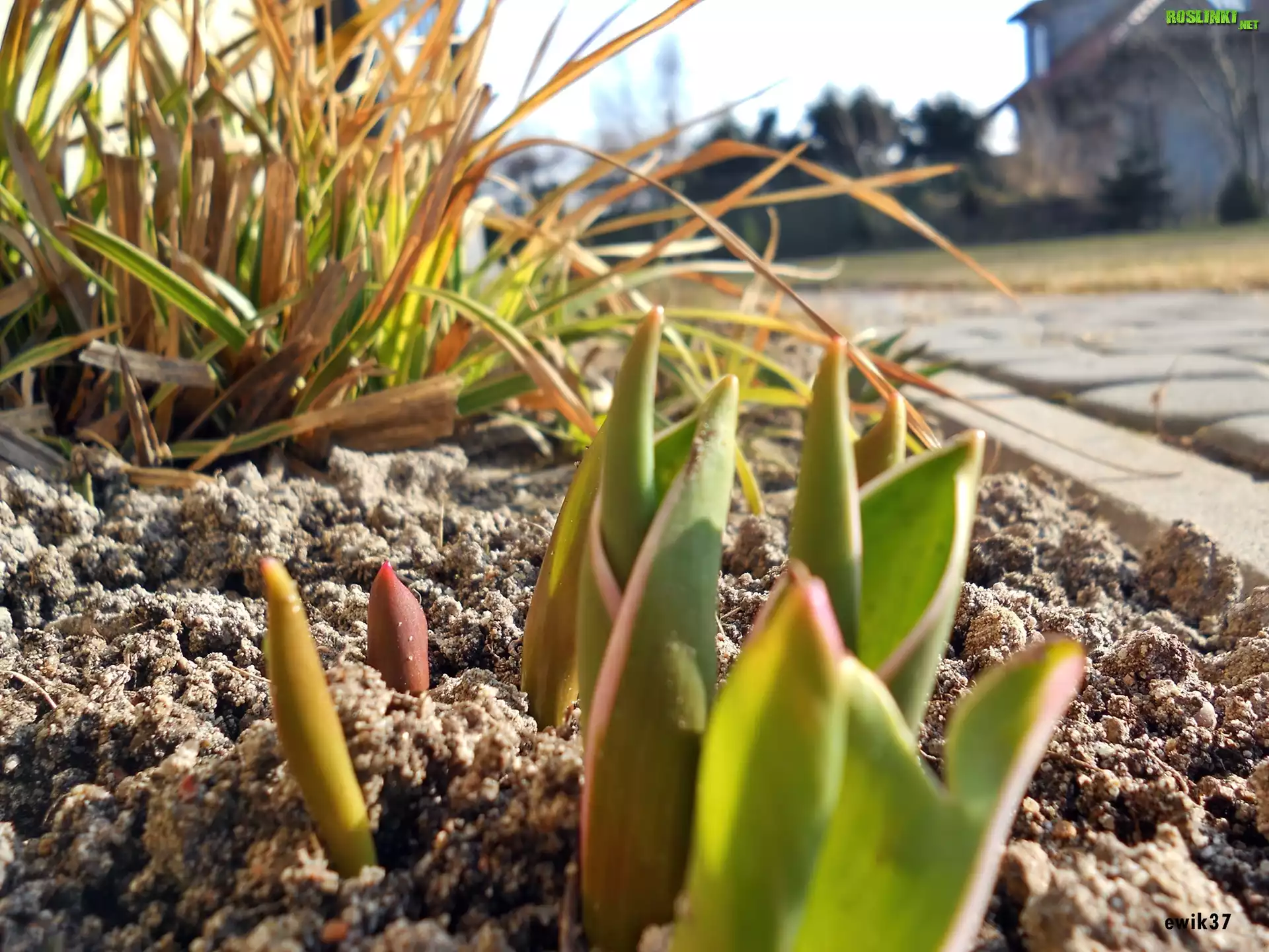 Rośliny: Ozdobna, Trawa, Młode, Tulipany