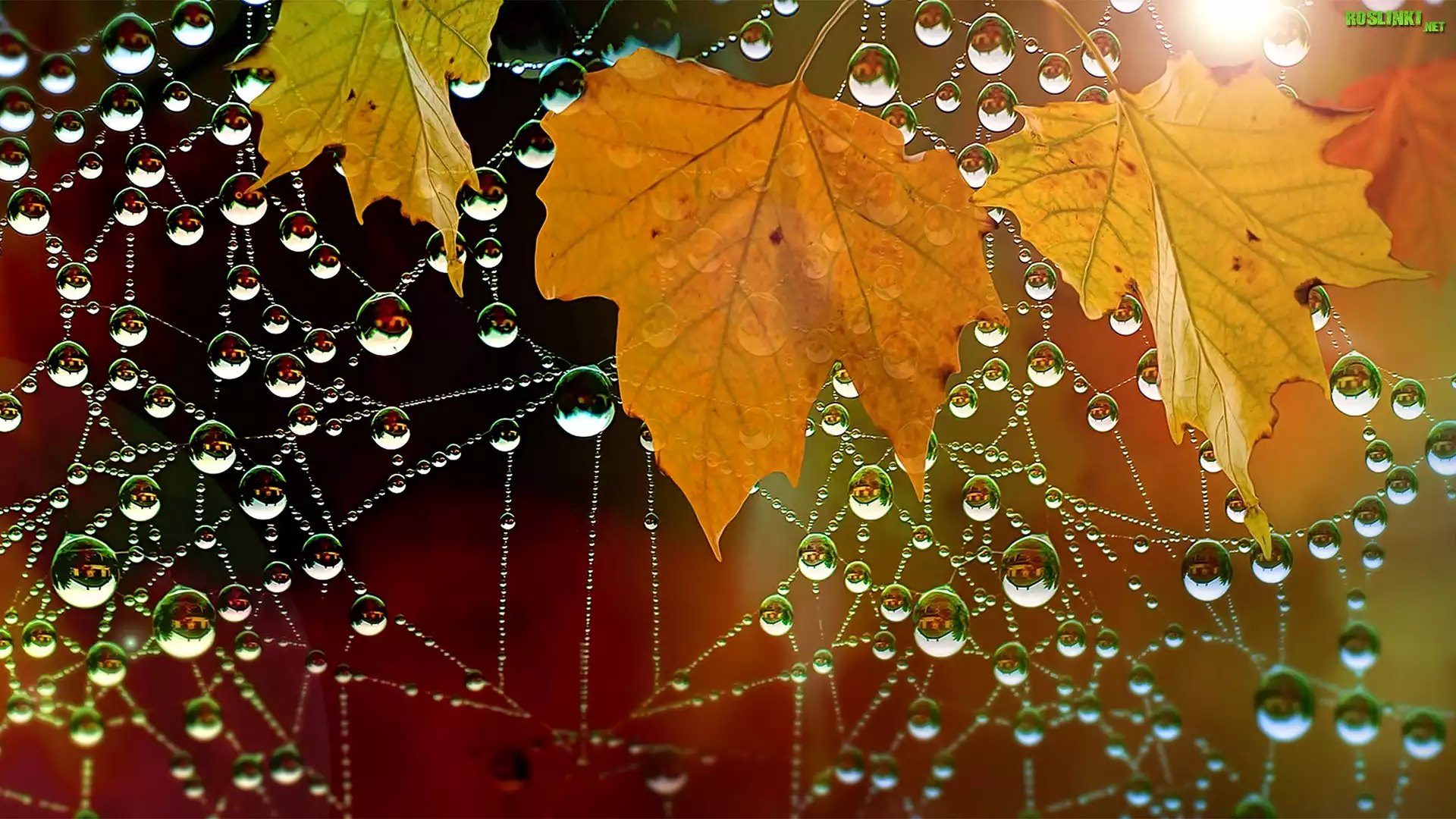 Rośliny: Pajęczyna, Liście, Krople, Wody