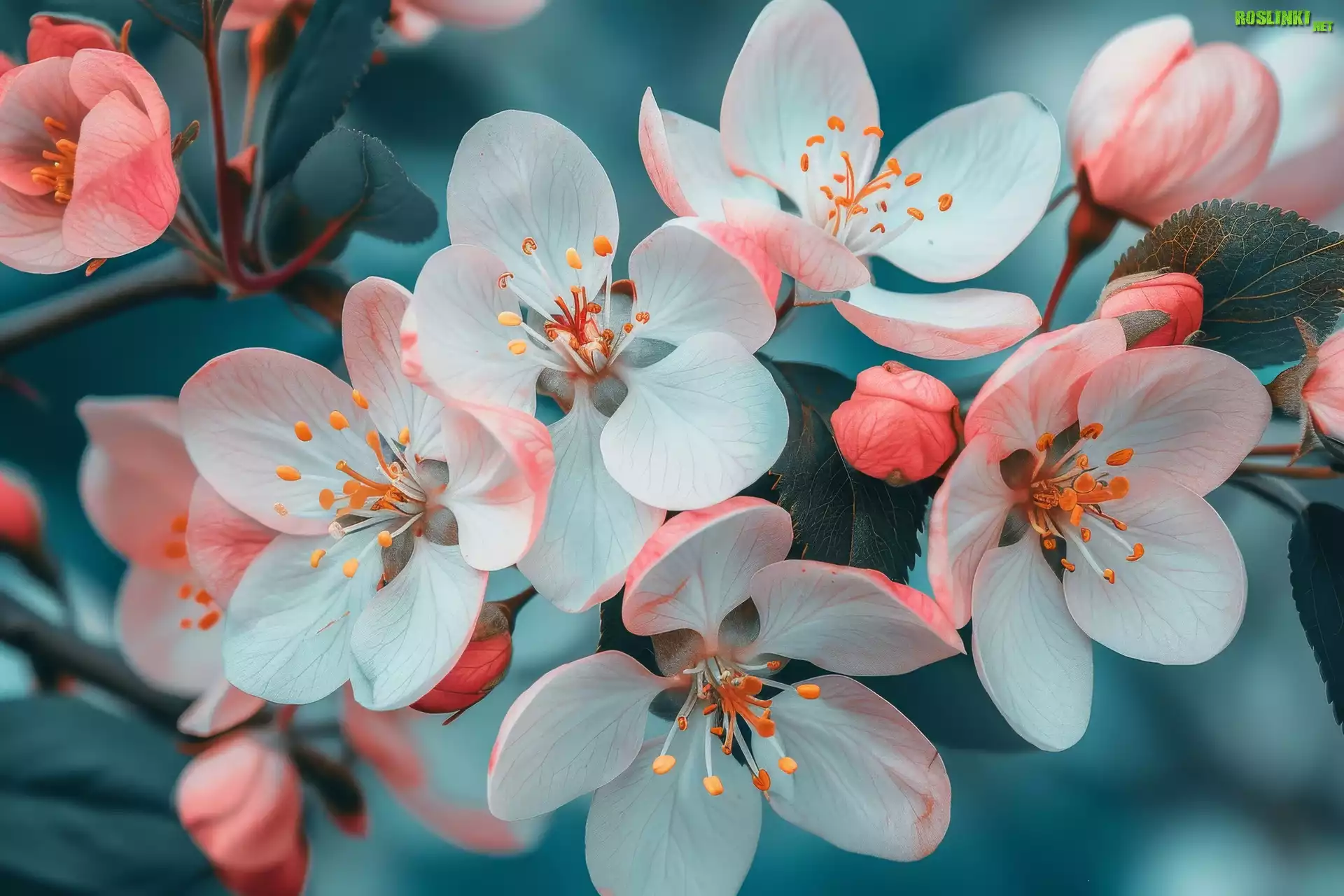 Rośliny: Biało-różowe, Kwiaty, Pąki, Drzewo owocowe, Zbliżenie