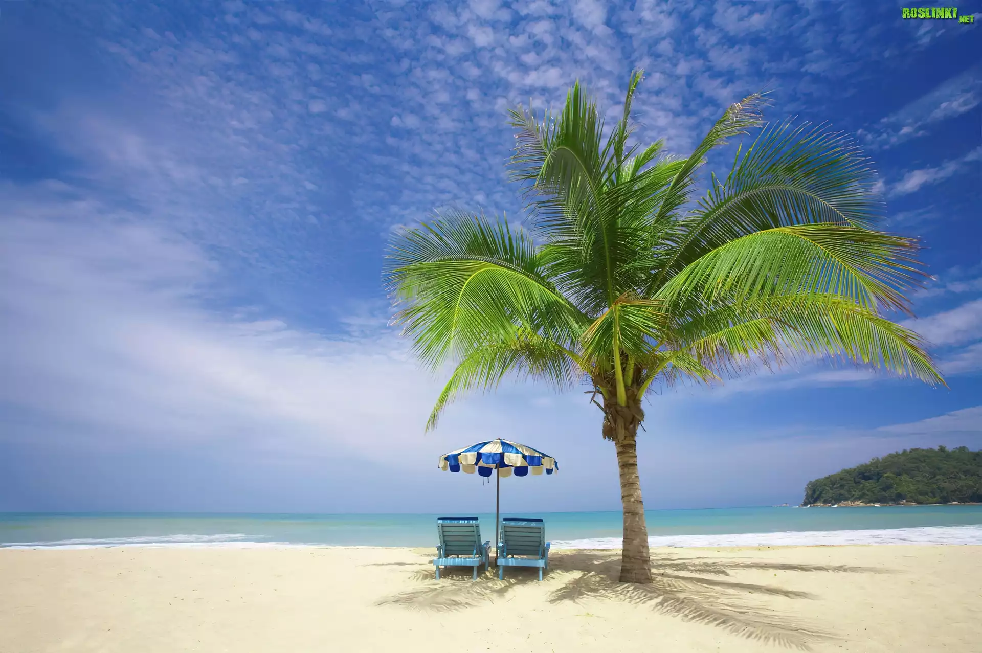Rośliny: Plaża, Palma, Leżaki, Wakacje