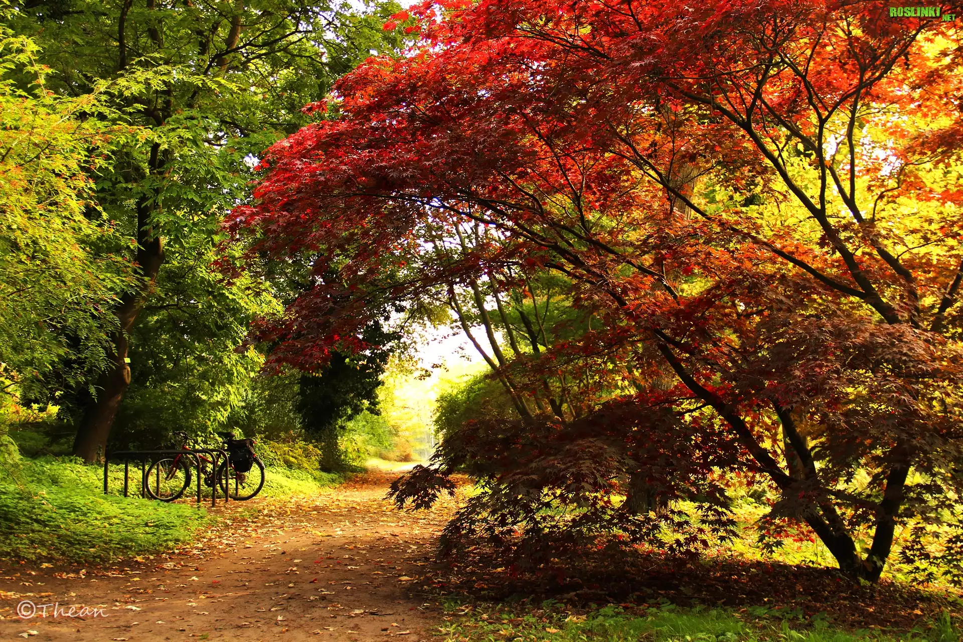Rośliny: Klon Palmowy, Liście, Czerwone, Ścieżka, Park, Jesień
