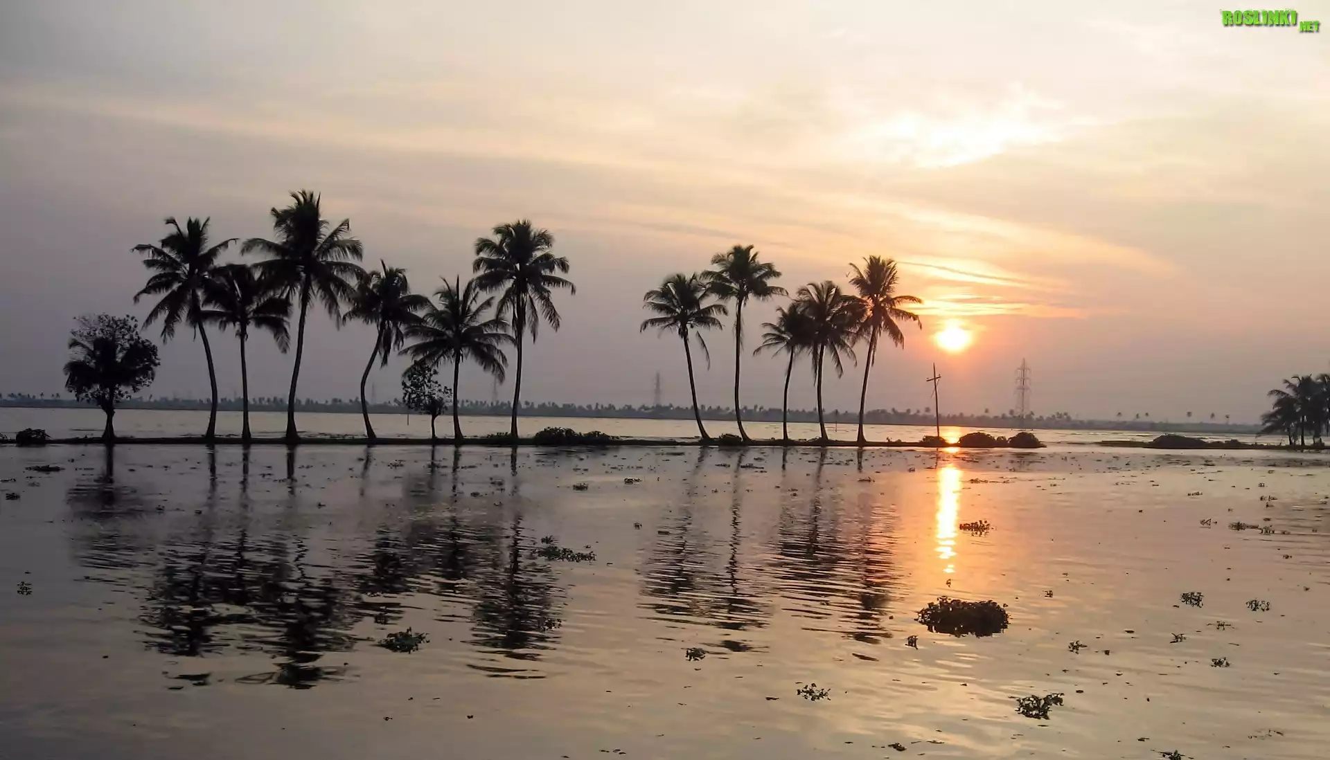 Rośliny: Świt, Jezioro, Palmy, Odbicie