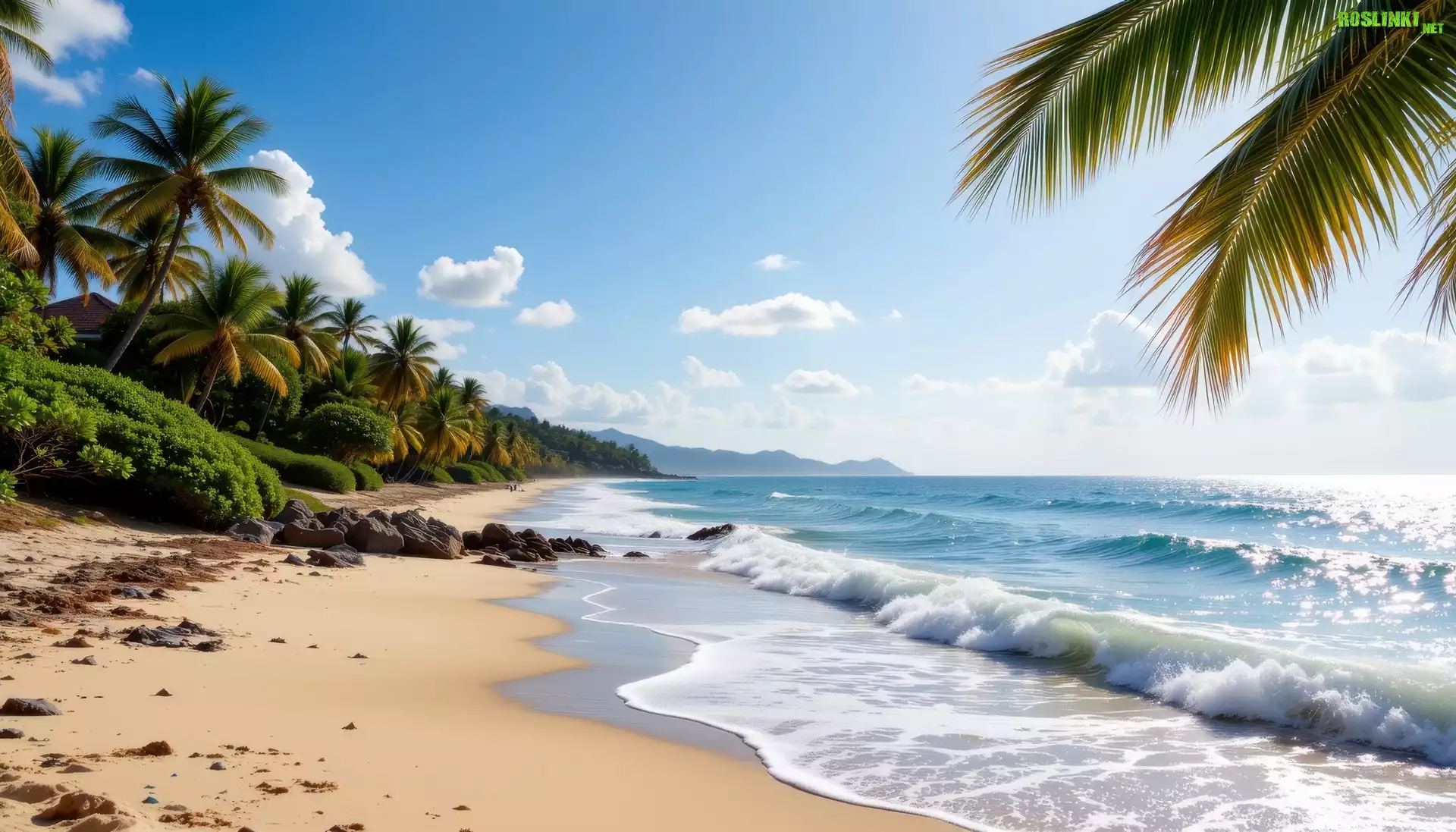 Rośliny: Plaża, Palmy, Morze, Tropiki, Grafika
