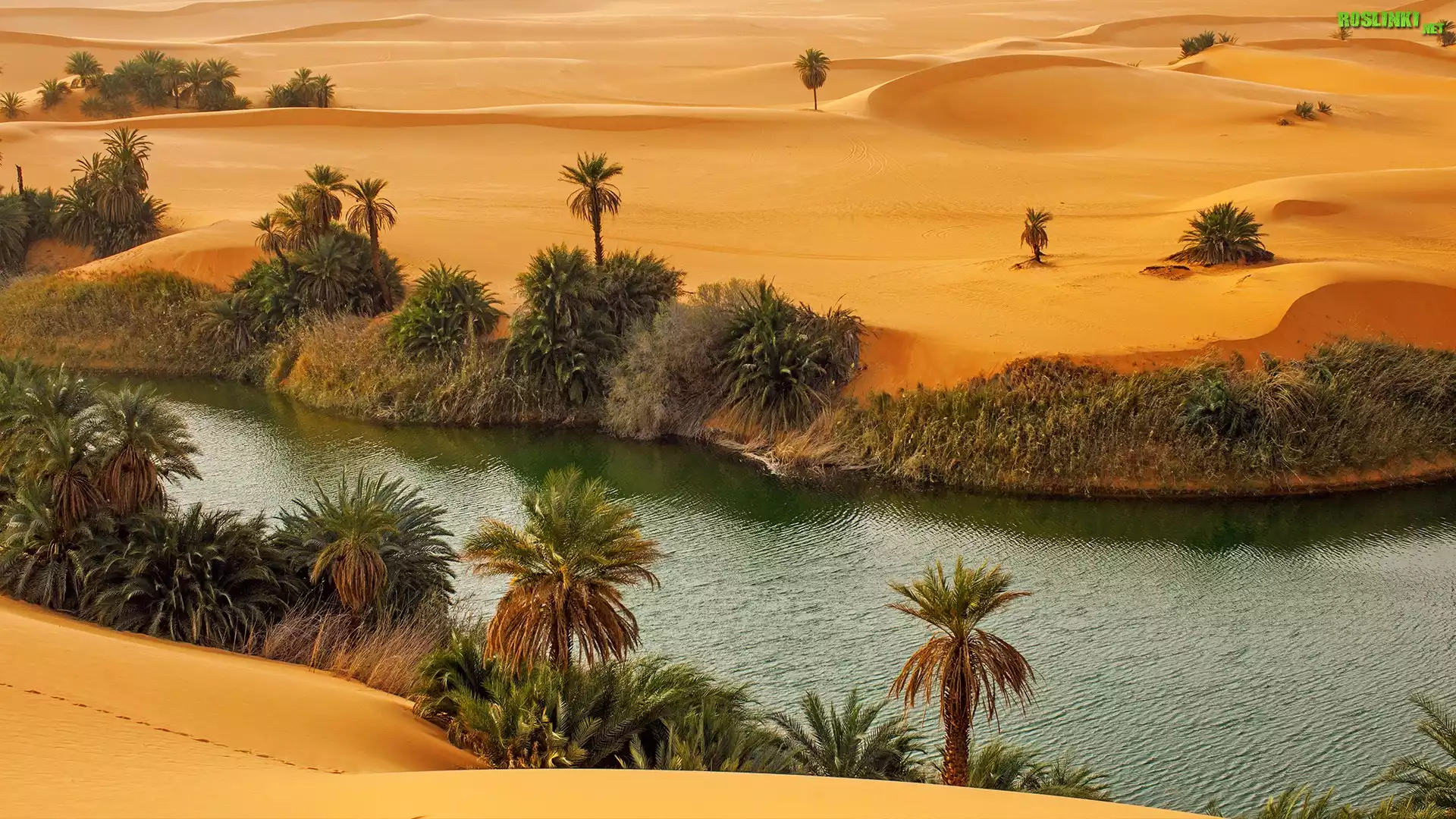 Rośliny: Oaza, Pustynia, Krzewy, Palmy, Woda, Piasek